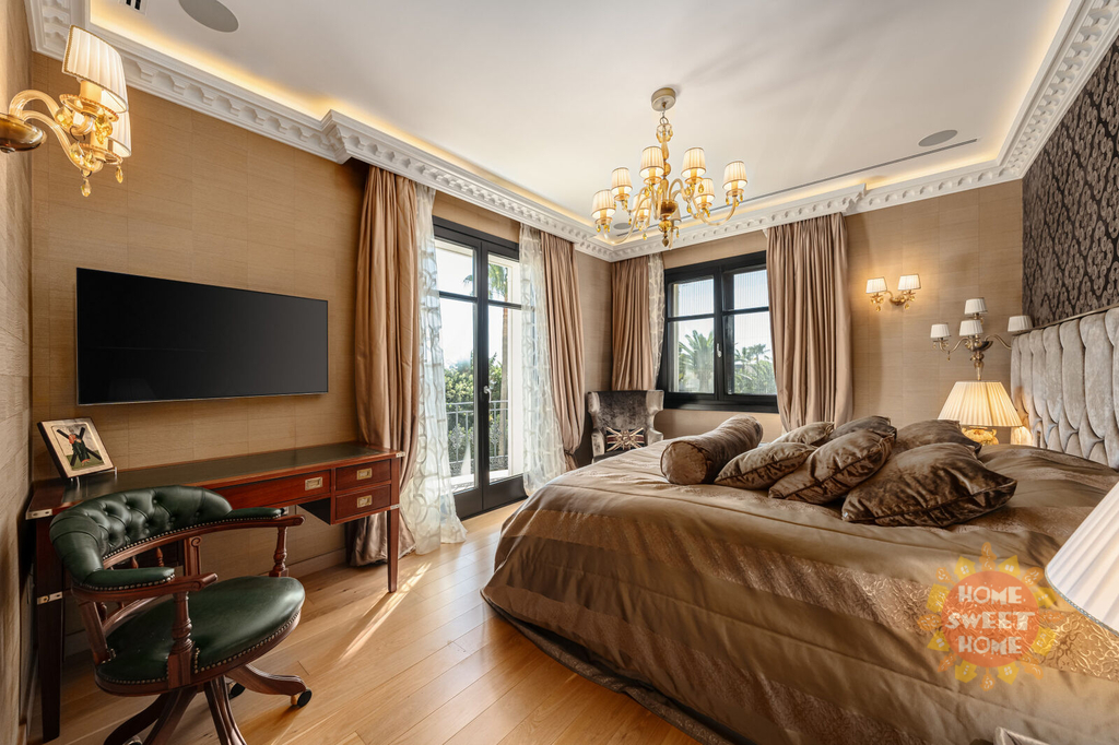 Luxusní sídlo se sedmi ložnicemi na prodej v Haciendě Las Chapas, Marbella East, postavené podle nejvyšších standardů, tato ohromná palácová vila je plná detailů a vypadá přímo jako z pohádky. Velkolepá velkolepá vila nejvyšší kvality stojí na obrovském pozemku v jedné z nejlepších urbanizací Marbelly a je obklopena nádhernou svěží přírodou Las Chapas a podobnými špičkovými nemovitostmi. Byla navržena slavným architektem, který ji začlenil do přírodní krajiny této oblasti, a vystavuje na odiv luxusní klasickou středomořskou architekturu, kde je tradiční královský styl obohacen o ohromující moderní prvky a prvky. Nemovitost je orientována na jih/západ a nabízí působivý výhled na Středozemní moře, africké pobřeží a ikonickou horu La Concha. Vchod v palácovém stylu s centrální fontánou a elegantní fasádou, kde je klíčem symetrie, udává náladu a tón celému domu. Úchvatná tříúrovňová rezidence, která je symbolem bohatství a vznešenosti, zahrnuje v přízemí: velký elegantní obývací pokoj s krbem, úchvatnou jídelnu, plně vybavenou moderní kuchyň, pracovnu a toaletu pro hosty. Z obytných prostor je přístup do dokonale udržovaných zahrad v parkovém stylu s vyhřívaným bazénem, který podporuje nádherný středomořský životní styl. V patře se nachází 5 pozoruhodných ložnic s vlastní koupelnou a přímým vstupem na velké terasy s fantastickým výhledem na moře a hory. Ve spodním patře se nacházejí prostory pro zábavu a zdraví (SPA, turecké lázně, sauna, posilovna, relaxační místnost, prosklená vinotéka atd.), stejně jako dva samostatné apartmány pro hosty nebo personál, prádelna atd. V soukromé garáži je místo pro tři auta z vaší sbírky. Otevřené i uzavřené terasy vybízejí k celoročnímu užívání příjemného počasí. Jelikož se jedná o skutečně luxusní nemovitost, je vybavena systémem domácí automatizace, klimatizací, částečným podlahovým vytápěním, oválnou volně stojící vanou, vířivkou, dvojitým zasklením, úžasným designem osvětlení, bezpečnostními kamerami a vším, co potřebujete pro ten nejexkluzivnější a nejbezpečnější život.