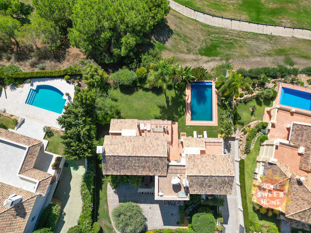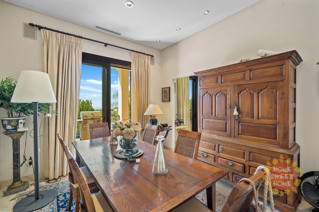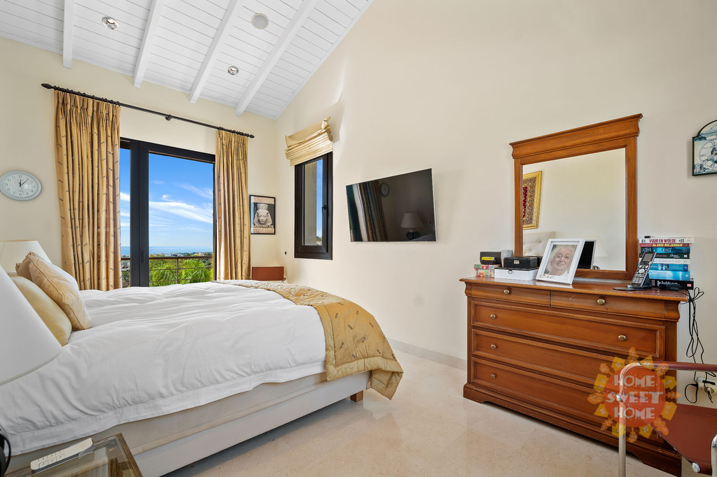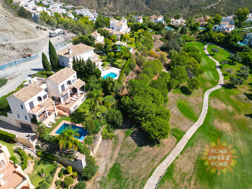 Fantastická vila s pěti ložnicemi a jižní orientací v lokalitě La Quinta, Benahavis. Vila se nachází v jen kousek od místní občanské vybavenosti a měst Puerto Banus a Marbella. Nemovitost má v přízemí prostornou vstupní halu vedoucí do velkého obývacího pokoje, plně vybavenou kuchyň a jídelnu, a toaletu pro hosty. Ze všech místností na této úrovni je přístup na terasu, do soukromé zahrady a k bazénu, od kus nabízí krásný výhled na moře a golfové hřiště. V prvním patře se nachází hlavní ložnice s klenutými stropy, šatnou a koupelnou, dvě ložnice pro hosty a koupelna pro hosty. Ve spodním patře nemovitosti se nachází kuchyň a jídelna s nezávislým přístupem ze zahrady, dva pokoje pro hosty a kinosál. K dalšímu vybavení vily patří klimatizace s funkcí topení a chlazení, alarm, elektrické žaluzie a garáž.