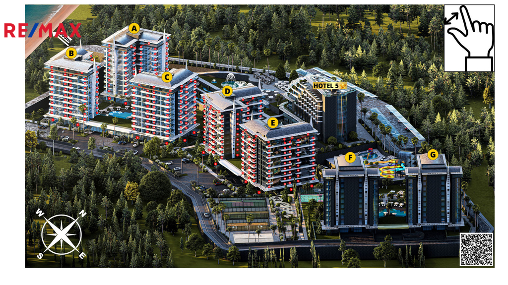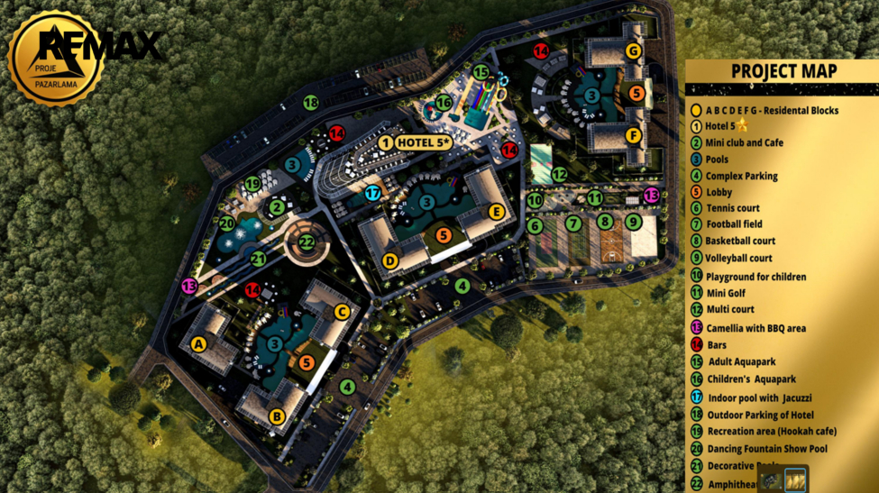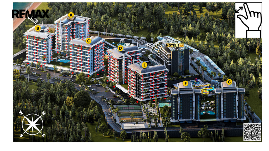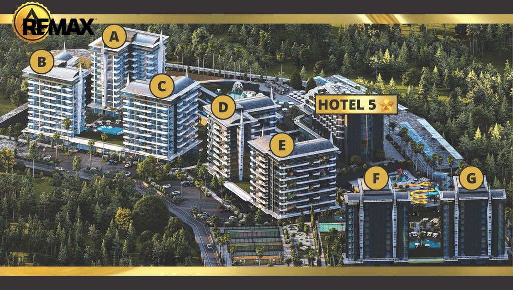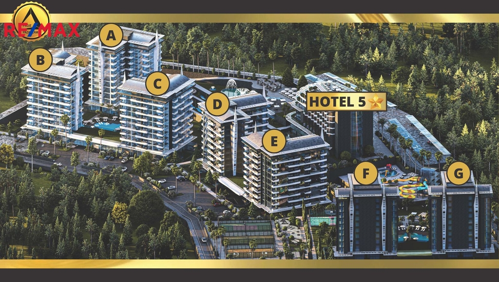 Představují byt v unikátním luxusním komplexu, který se nachází v chráněné oblasti, uprostřed jehličnatého lesa, nedaleko růžové písečné pláže. V okrese Avsalar na severu Alanye a je považován za jednu z nejkrásnějších oblastí. Projektová oblast zajímá - 52.000 m2 se vzdáleností k moří - 900 m. Konec stavby 30.06.2026 roku. Na území se nachází luxusní 5tihvězdičkový hotel s bohatou infrastrukturou, kde je zajištěno vše pro pohodlný pobyt: bazény, vodní plochy, fitness, lázně, park, sportovní a zábavní prostory, lobby, recepce, ostraha a mnoho dalšího. Majitelé v obytném komplexu mohou používat celou hotelovou infrastrukturu.