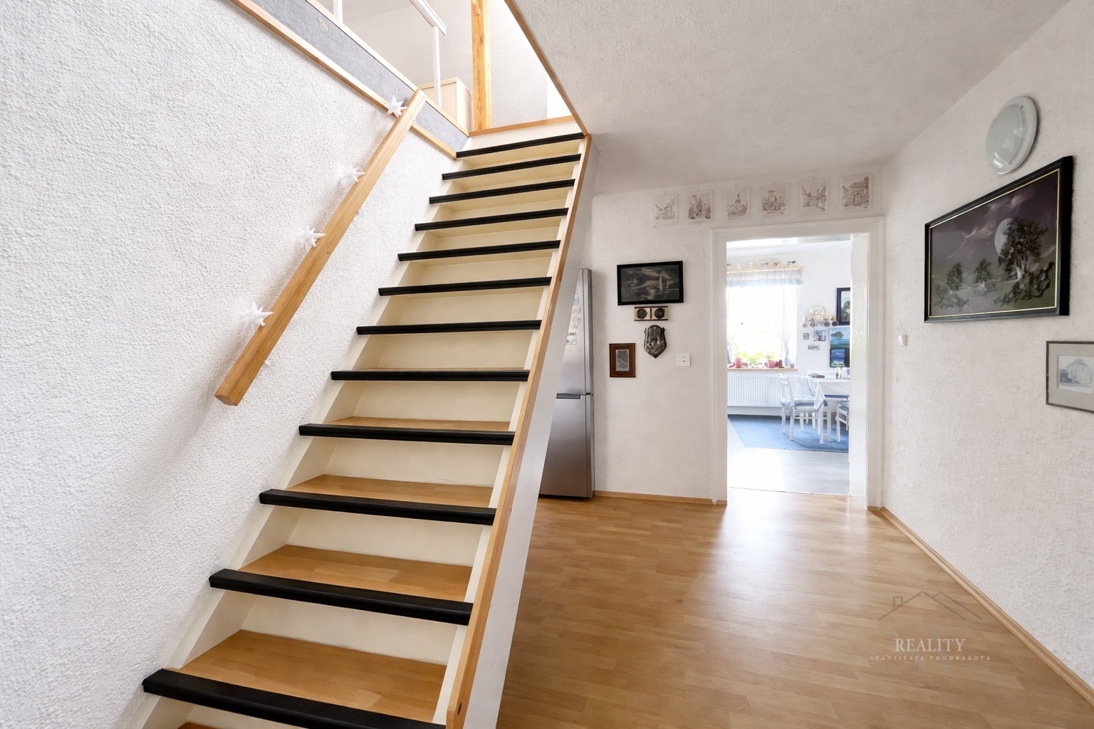 Dům má dvě nadzemní podlaží včetně podkroví a je kompletně podsklepený. Celkově nabízí velkorysé prostory a velmi praktické dispoziční řešení.