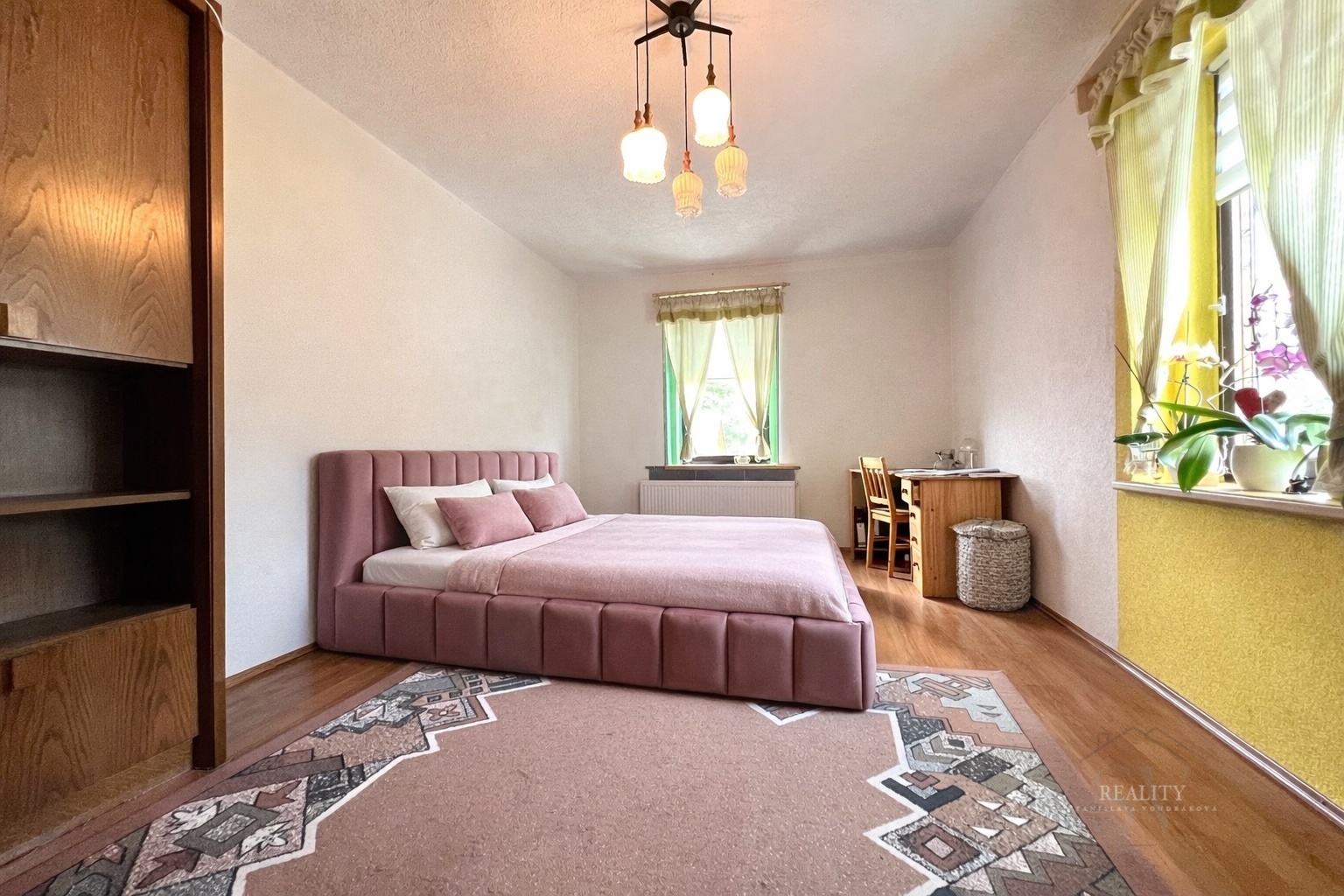 Nabízí zádveří, spíž, vstupní chodbu, kuchyň, obývací pokoj, koupelnu s velkou rohovou vanou a společným WC, ložnici, pokoj a schodiště do podkrovního pokoje (55 m²).
