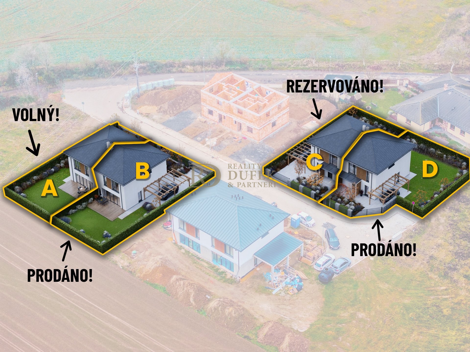 • Každý dům má vlastní vstup, napojené inženýrské sítě a kompletní infrastrukturu.