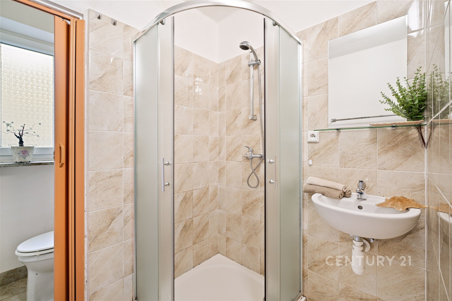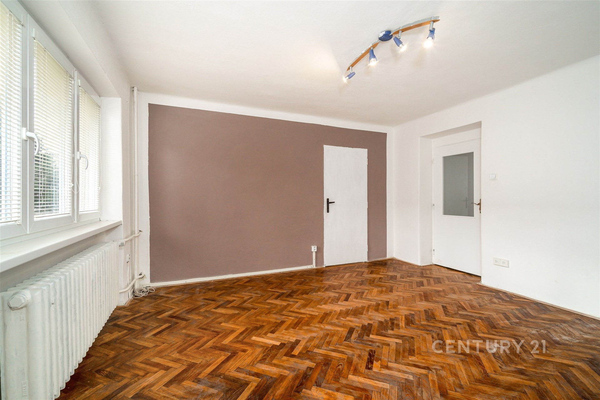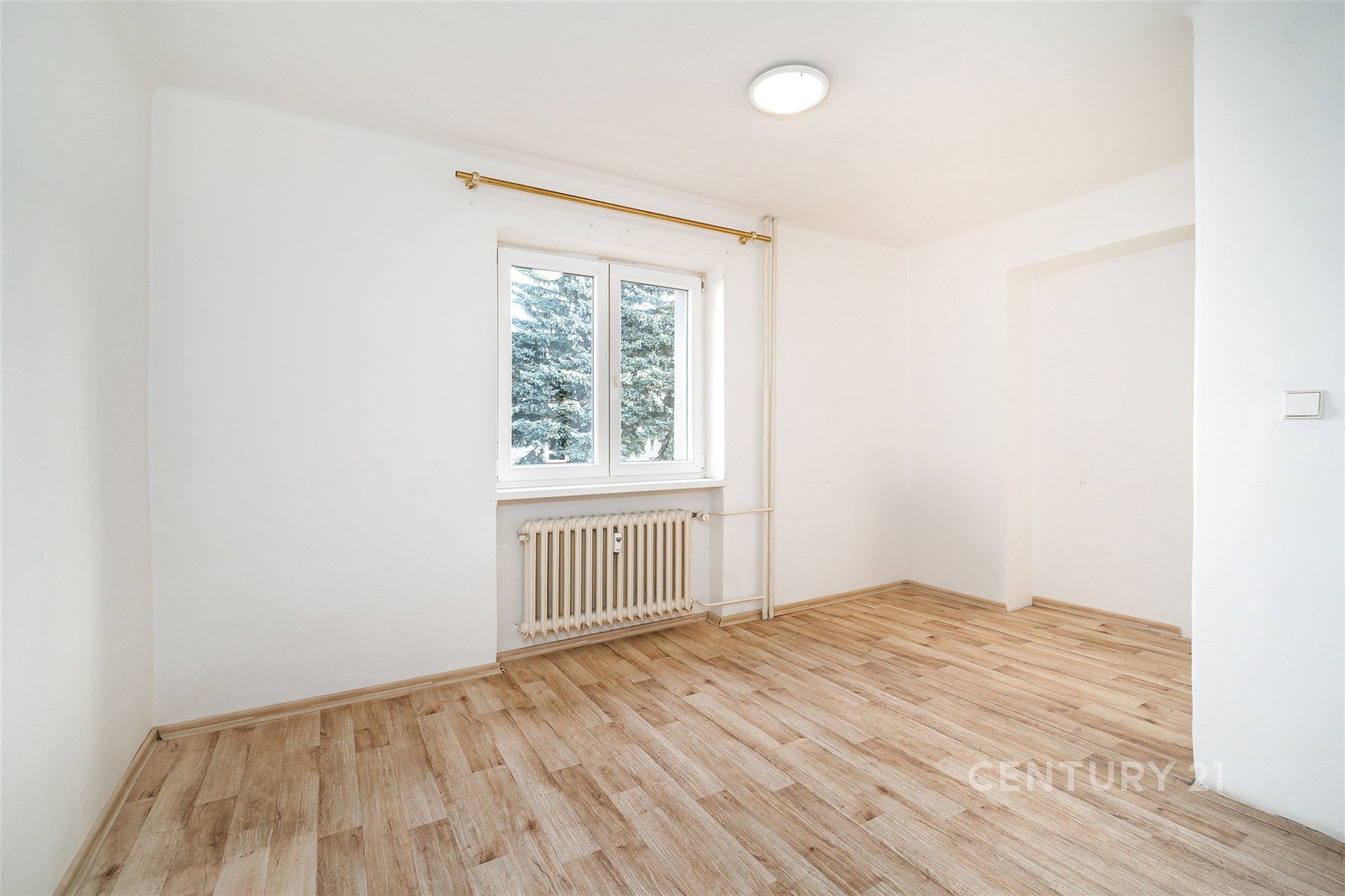 Byt je prakticky řešený – nabízí obývací pokoj, dva samostatné pokoje, kuchyňský kout, koupelnu se sprchovým koutem, samostatné WC a předsíň.