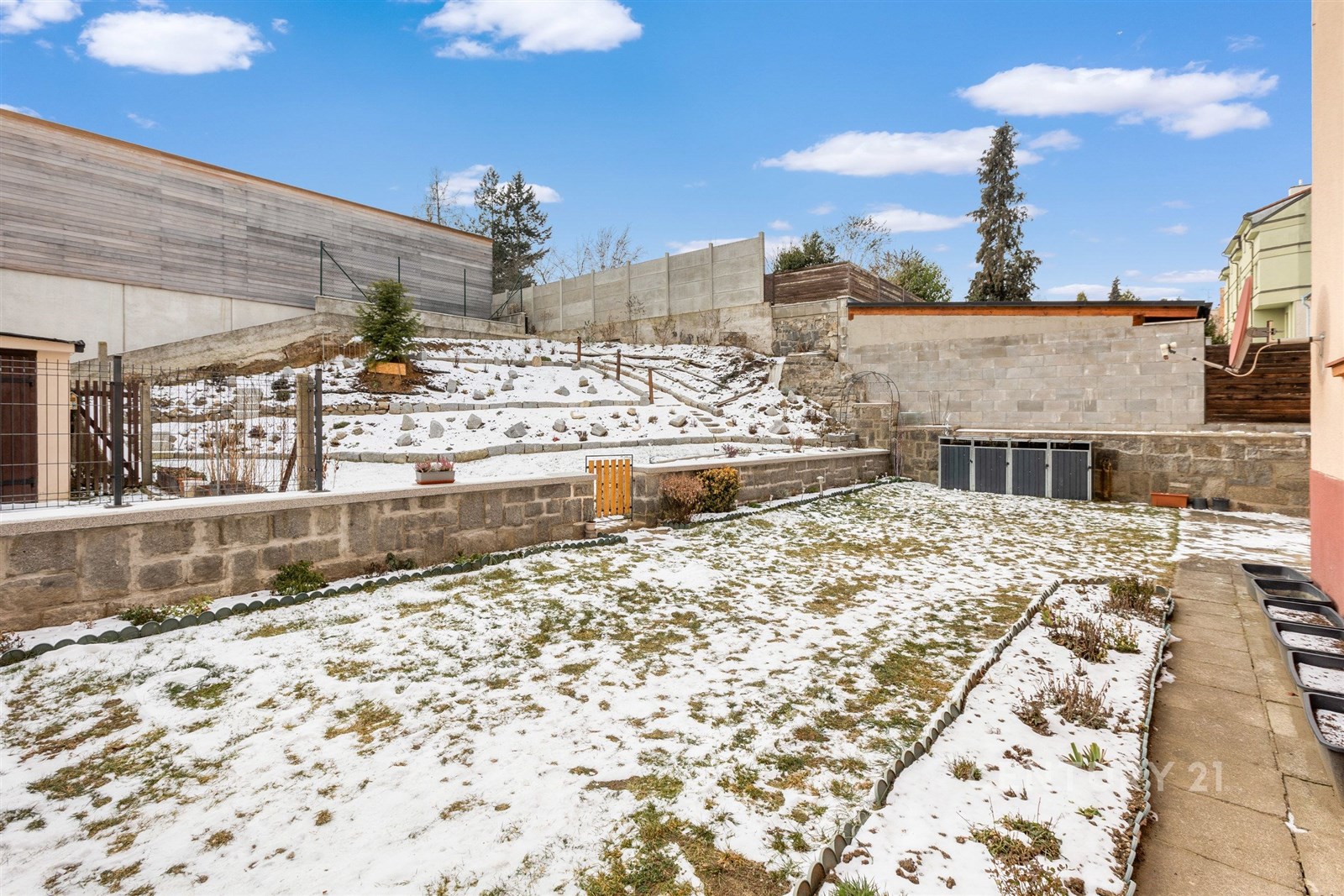 Cihlový dům byl zkolaudován v roce 1960 a je průběžně udržován. Za domem se rozléhá zahrada se zelení, na kterou je jedinečný výhled z okna obou pokojů. Je zde k dispozici balkón ke společnému užívání 3 bytových jednotek, který je vhodný pro posezení u kávy či sušení prádla.