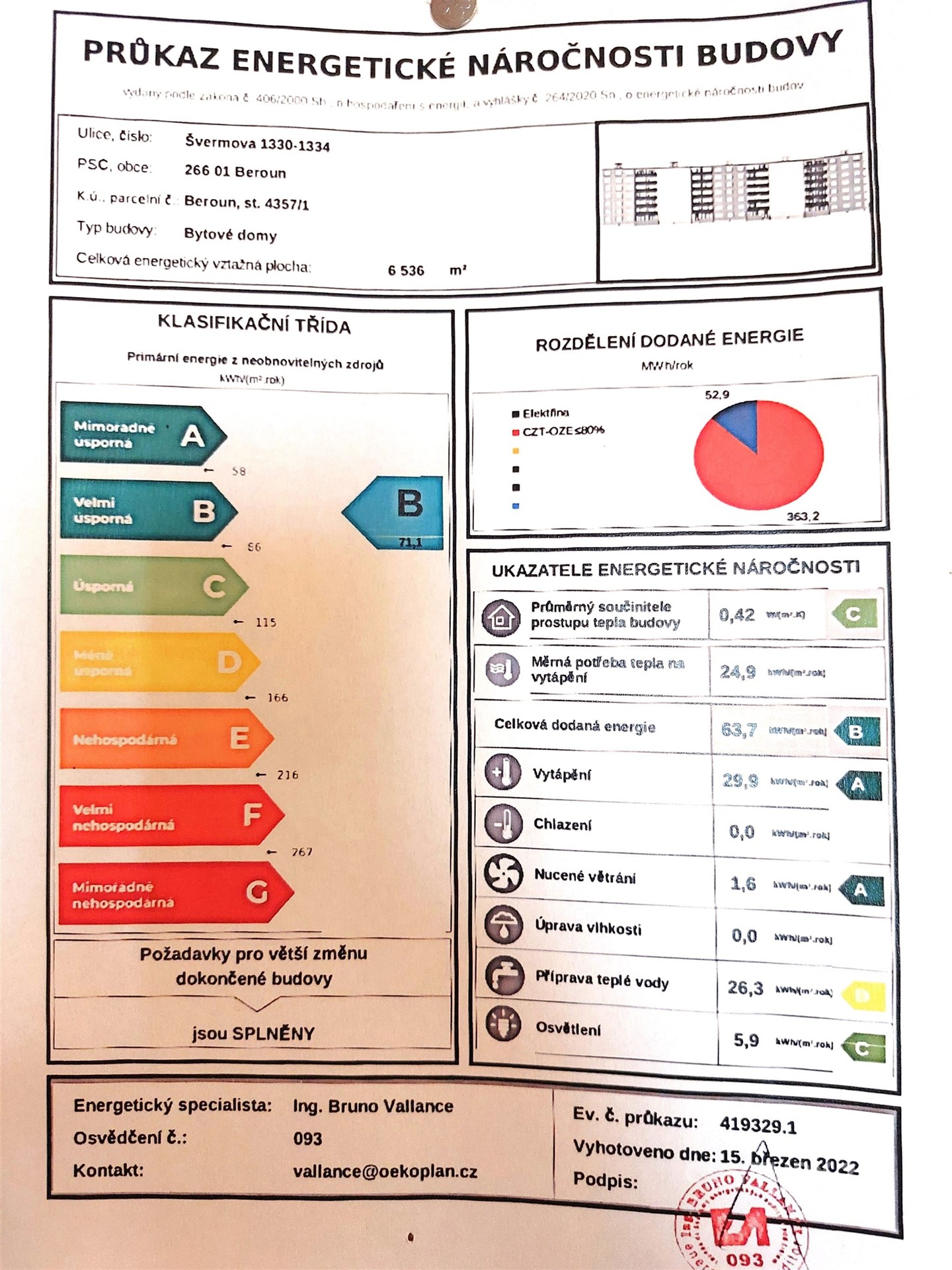 - Energetická náročnost budovy: B - Velmi úsporná