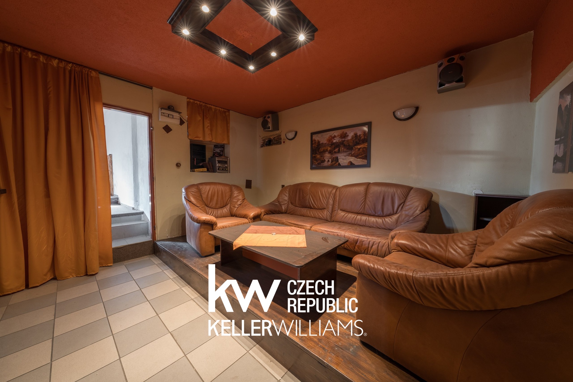 Přízemí: nebytový prostor, dříve využívaný jako bar, s přistavěnou kuchyní a garáž - cca 234 m²