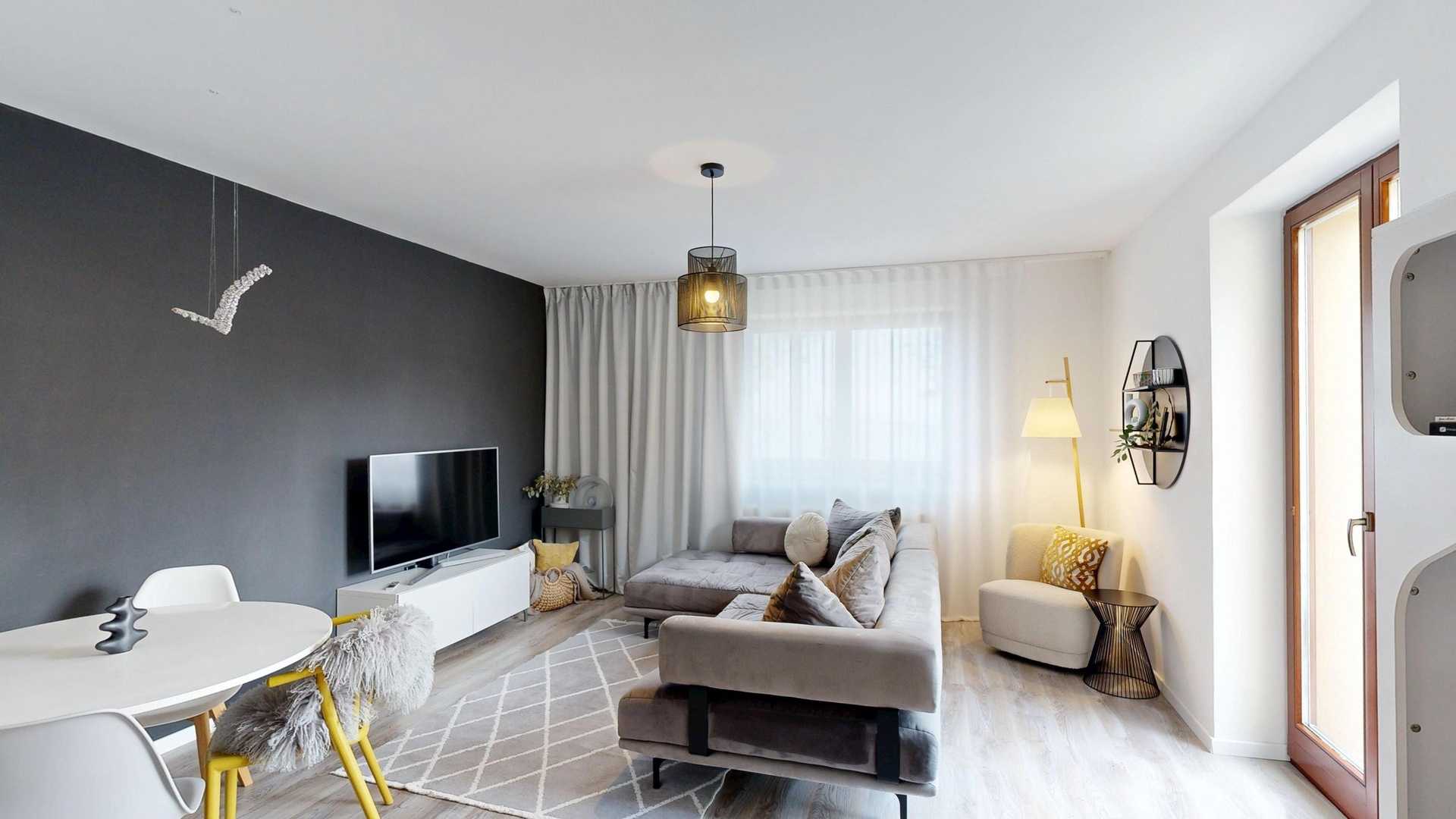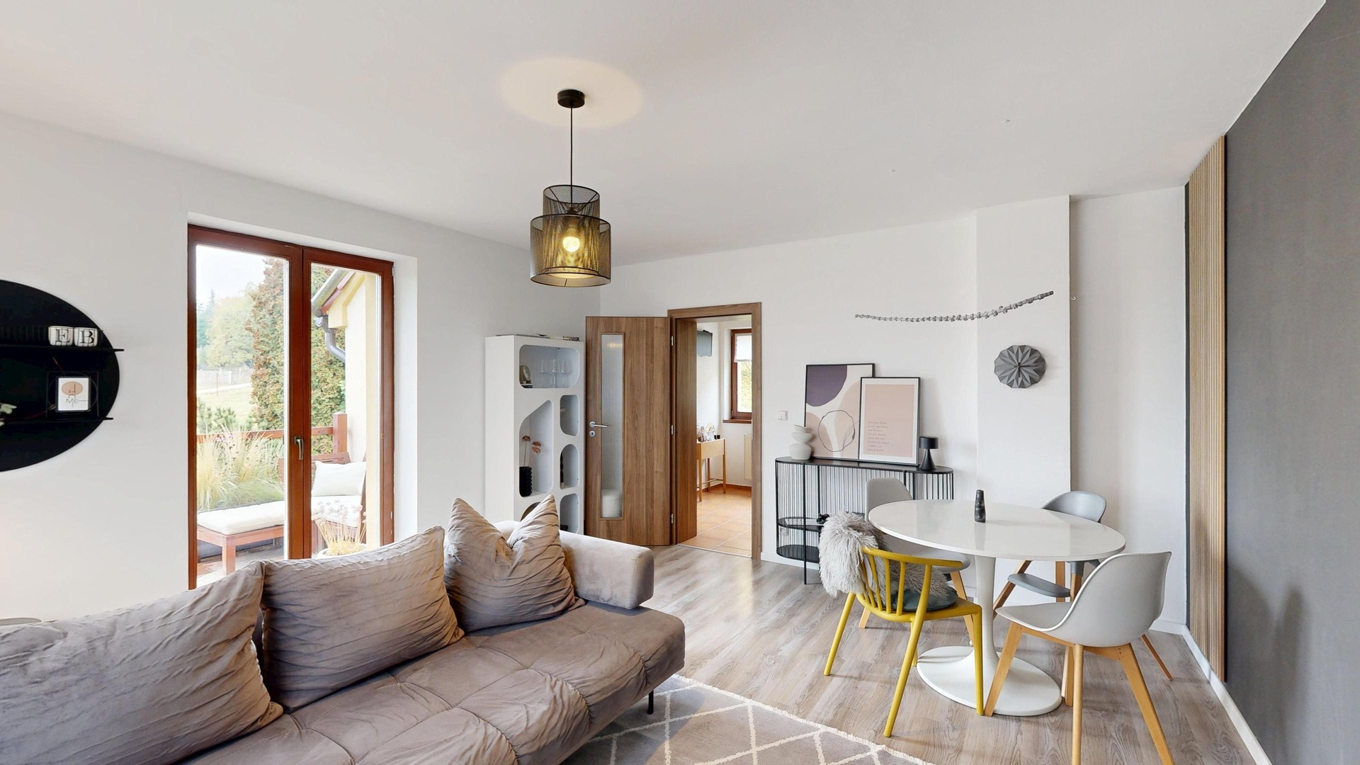 Interiér je proveden ve vysokém standardu a částečně zařízen.