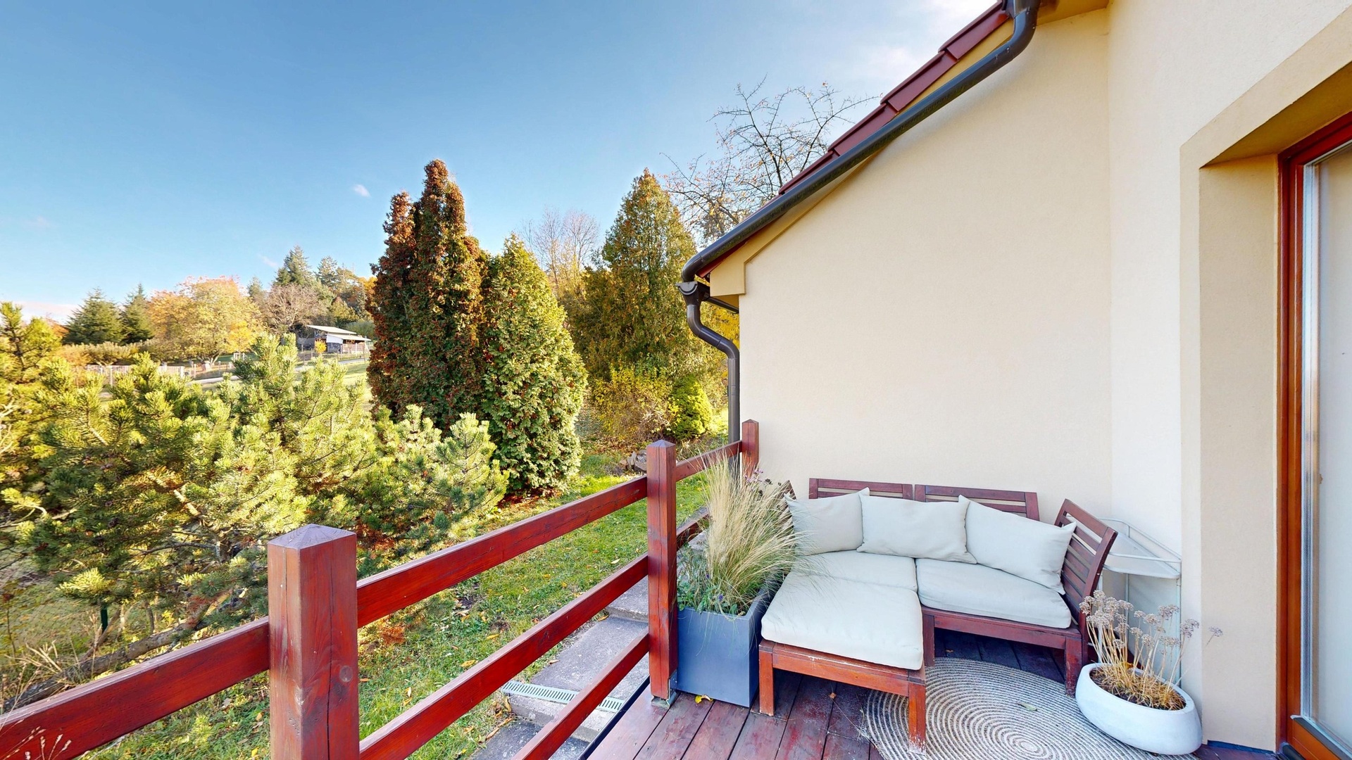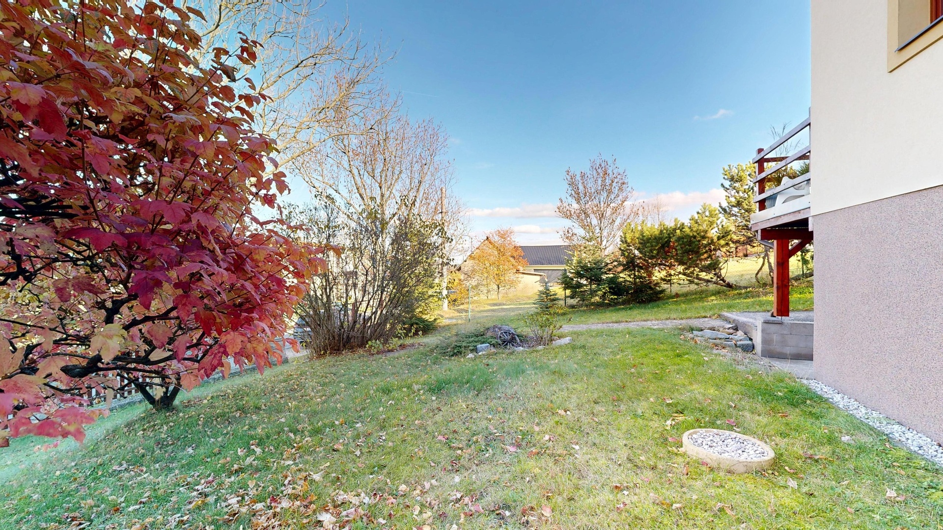 Součástí je udržovaná zahrada poskytující soukromí i prostor pro relaxaci a rodinné posezení.