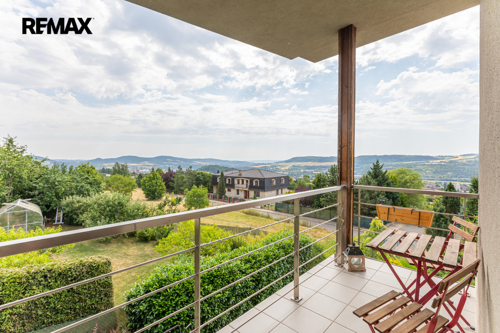 Zděný dům s promyšlenou dispozici 5+1 je obklopen zahradou s parkovou úpravou, se vzrostlými stromy a stálezelenými keři. Nemovitost má jižní orientaci a jedinečný výhled z terasy a všech místností do údolí řeky Berounky a okolních kopců.