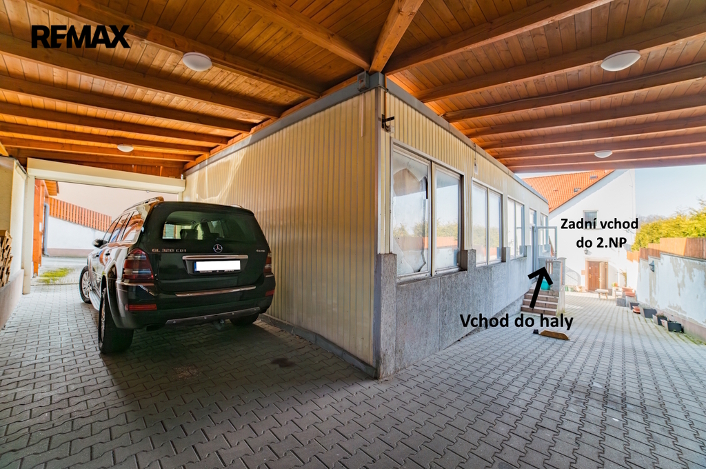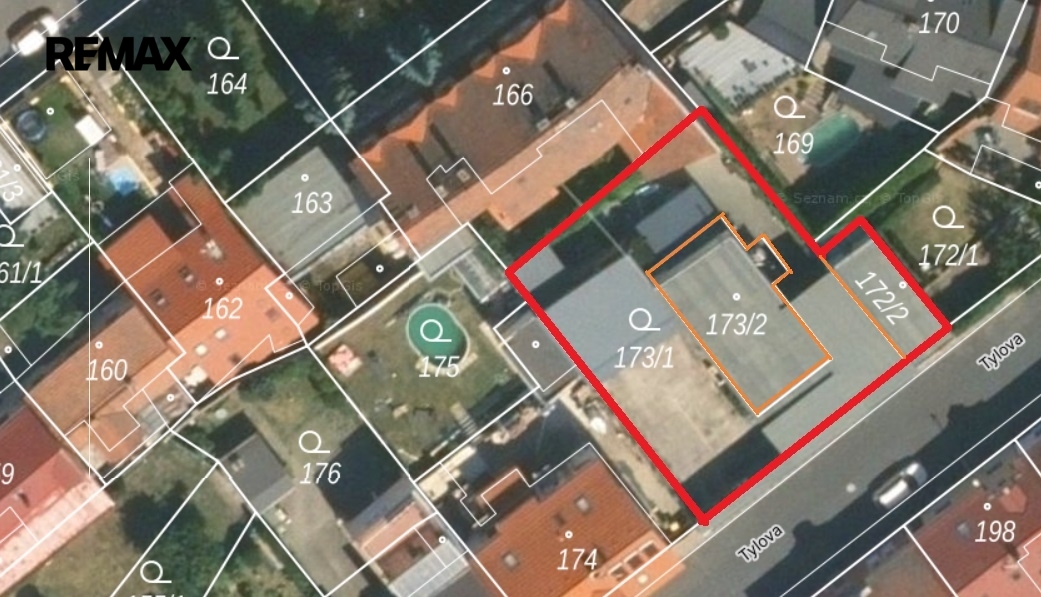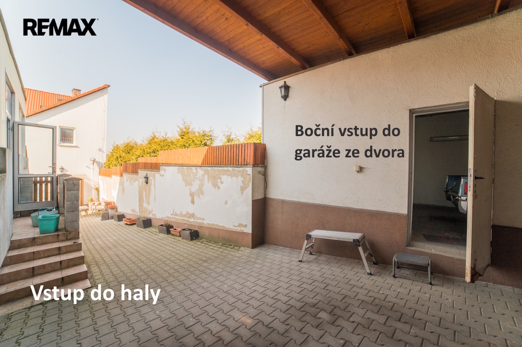 K areálu dále náleží samostatná dvougaráž s vlastním vjezdem z ulice Tylova a bočním vstupem přímo do dvora.