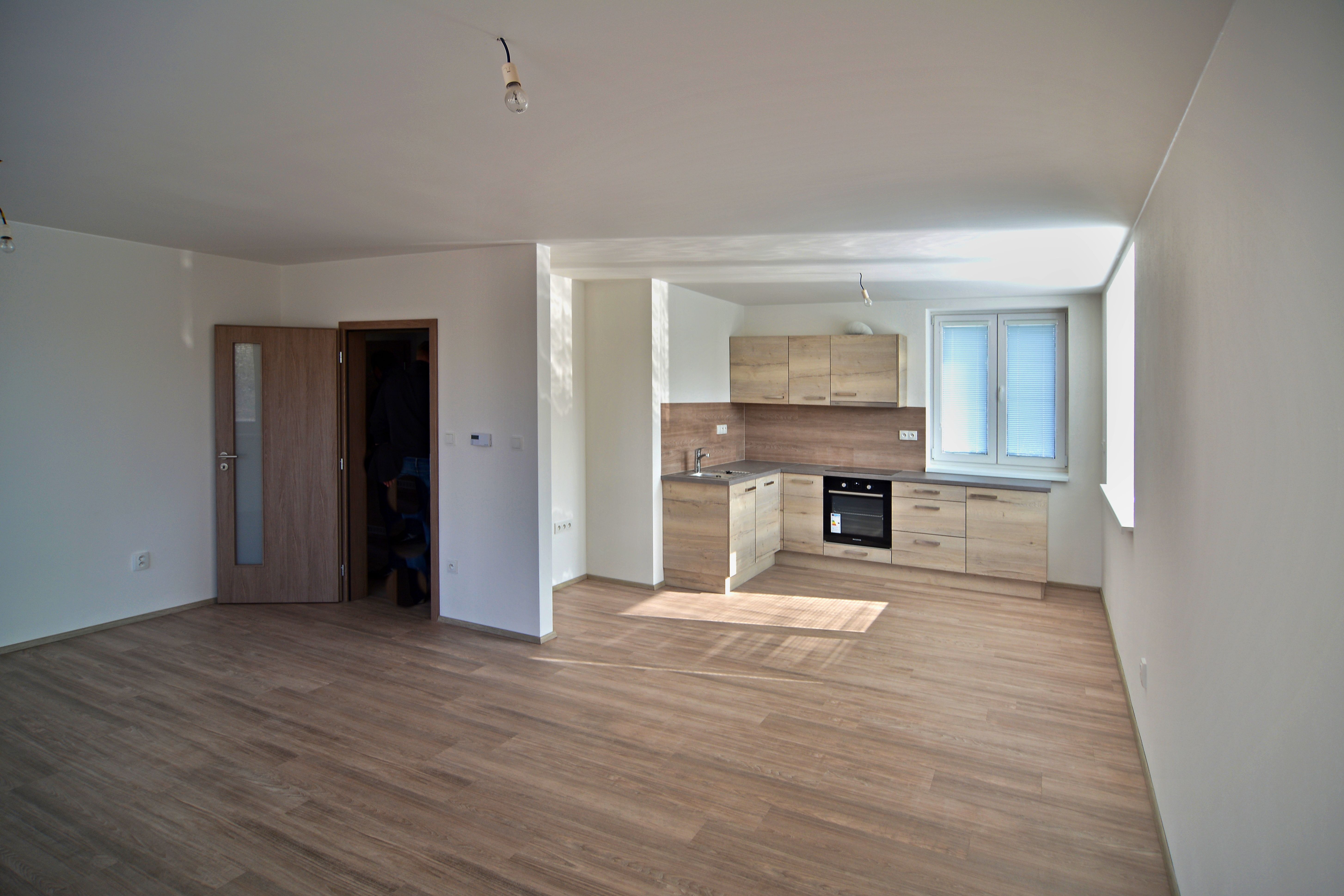 1.NP byt 3+kk: celková výměra bytu 89,46 m2, pokoj 12,40 m2, pokoj 11,75 m2, kuchyně s obývacím pokojem 35,84 m2, předsíň 8,17 m2, koupelna s vanou 4,21 m2, samostatné WC 1,57 m2, komora 2,15 m2, balkon včetně venkovního schodiště 8,19 m2. K bytu náleží zahrada o celkové výměře 142 m2, sklep 5,18 m2 a parkovací místo před domem o výměře 14 m2.