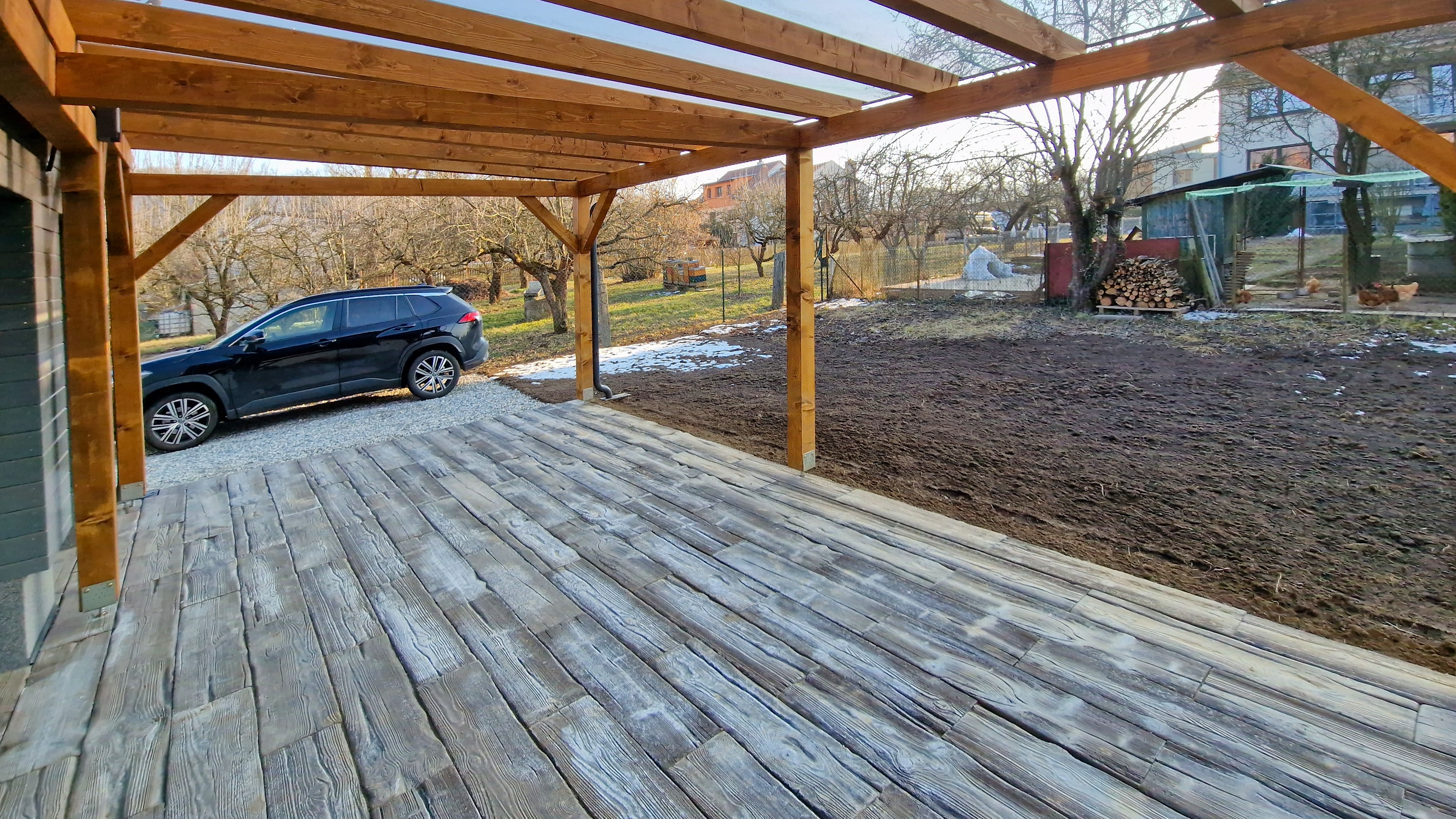 Součástí prodeje ji i novostavba menšího samostatně stojícího domku s krytou terasou o zastavěné ploše 25 m2 v zadní části pozemku. Domek je jakou součást hlavní stavby. Dům je vybaven tepelným čerpadlem pro vytápění a ohřev vody, koupelnou se sprchovým koutem, WC a umyvadlem. Kuchyňská linka včetně spotřebičů. Spaní je řešeno v podkrovní části domku s dřevěnou vestavěnou palandou.