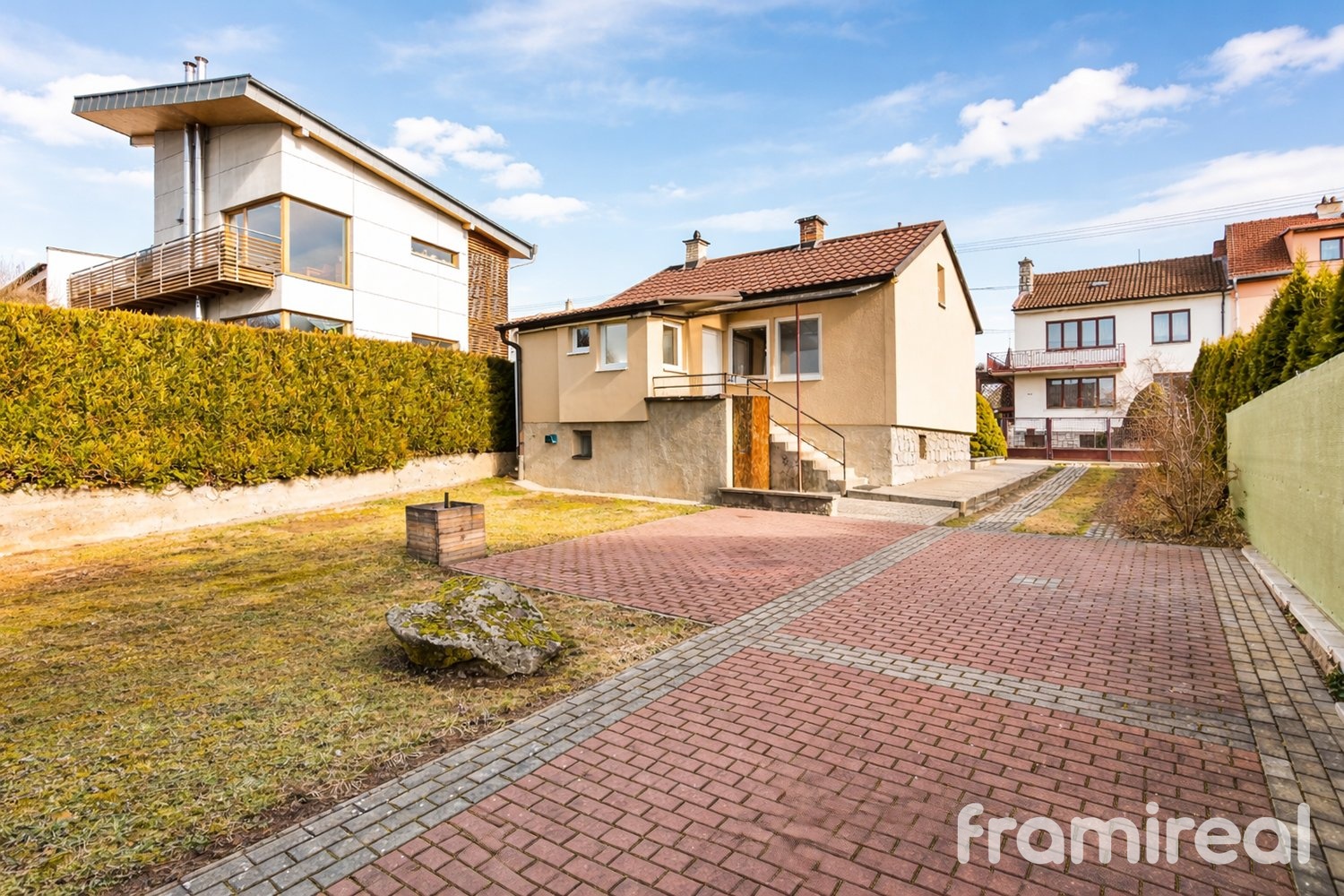 - Terasa, zahrada, vjezd na pozemek a parkování