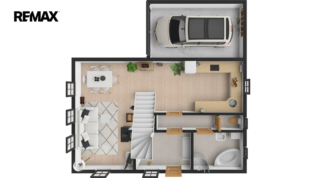 Tento dům je vybaven centrálním alarmem a připojením k internetu. K dispozici je také zahrada a přístup z místní komunikace. V suterénu najdete technickou místnost a kotelnu, v přízemí zádveří, koupelnu, toaletu, kuchyň, obývací pokoj a garáž s vlastním vstupem.