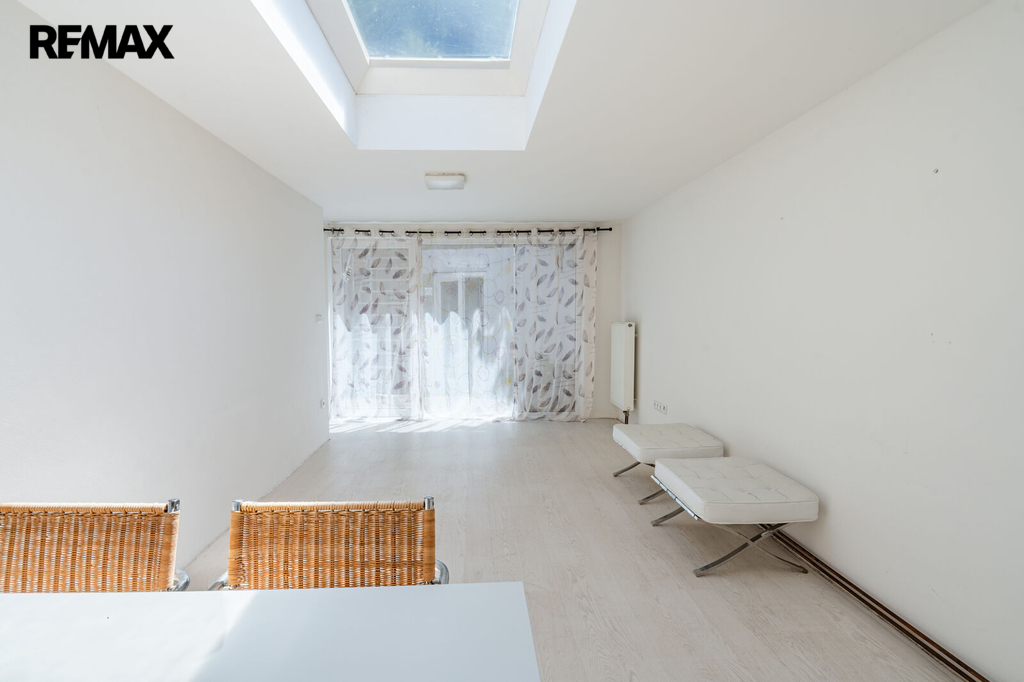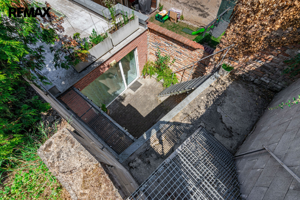 Obytná část je propojena s venkovním dvorkem, který umožňuje pohodlné venkovní posezení.