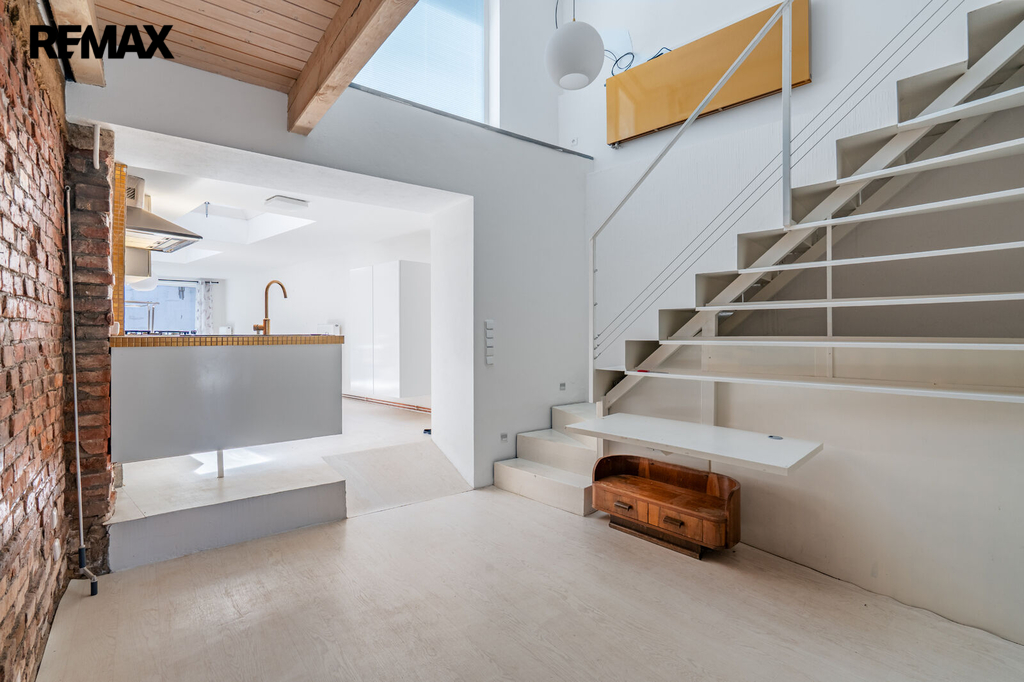 Řadový, patrový rodinný dům 2+kk s otevřenou dispozicí - loft, Blučina, ul. Komenského. Celková plocha pozemku 181 m2, užitná plocha domu cca 95 m2.