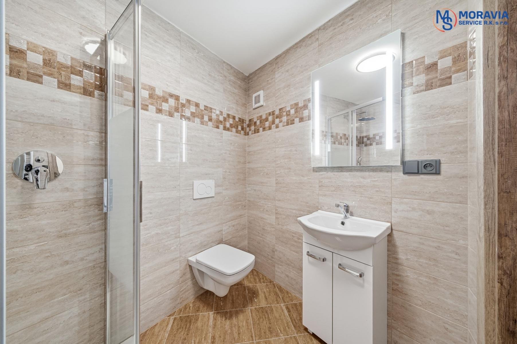 koupelna se sprchovým koutem a toaletou