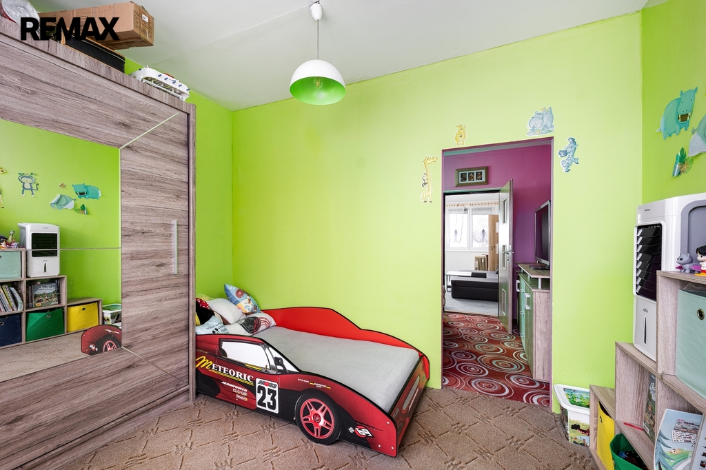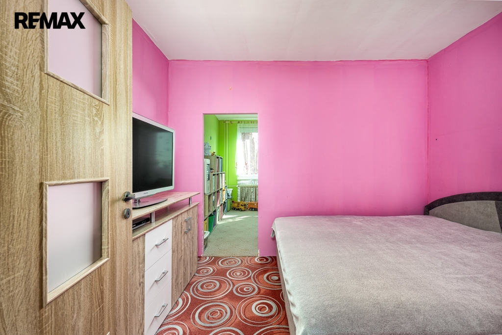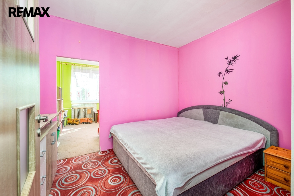 Jeden z pokojů byl rozdělen sádrokartonovou příčkou na dvě menší místnosti. V současnosti je tak využíván jako ložnice a dětský pokoj. Příčku je však možné poměrně snadno odstranit a místnost vrátit do původní podoby prostorného pokoje, čímž se otevírá variabilita dispozice podle potřeb budoucího majitele.