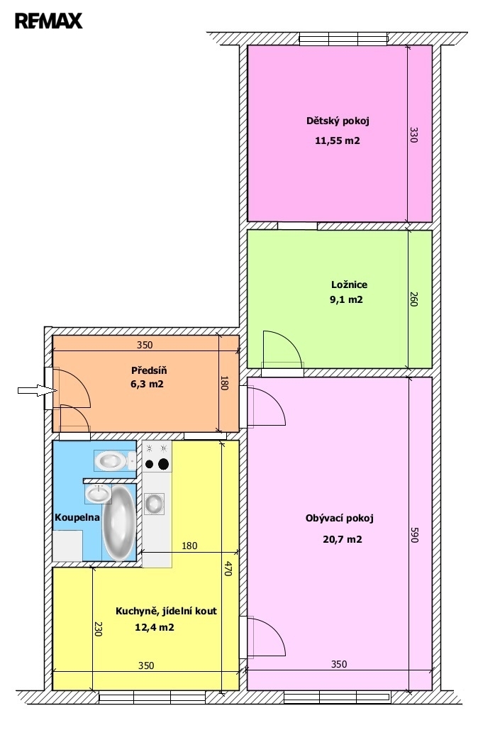 - Dispozice bytu: 2+1