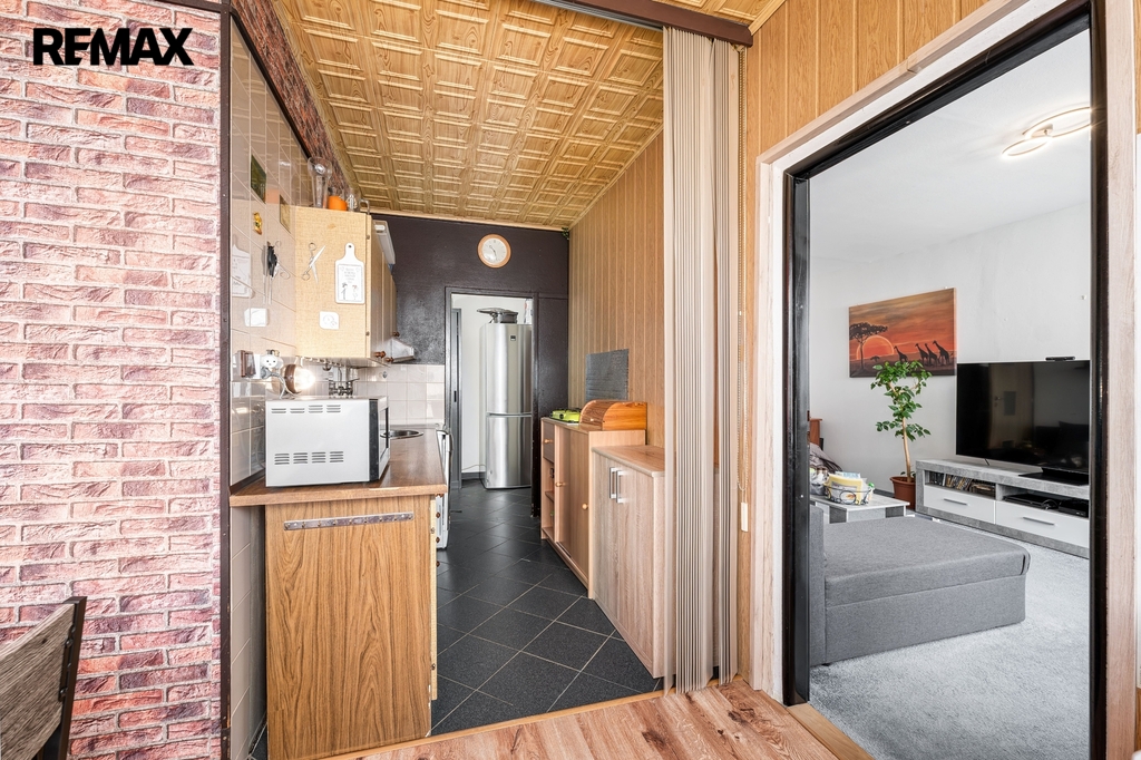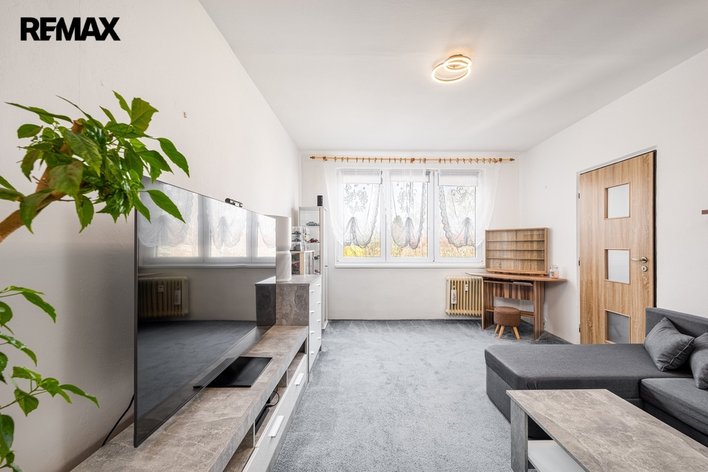Byt působí velmi světlým a příjemným dojmem a nabízí zajímavý potenciál pro vytvoření útulného domova.