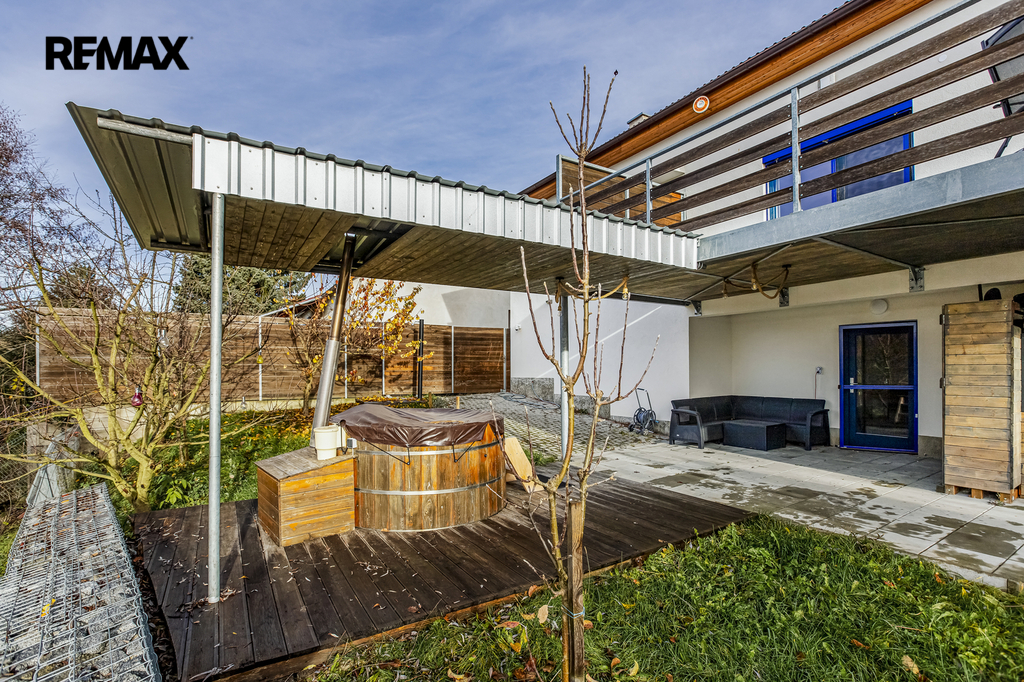 - venkovní posezení, vytápěný sud, venkovní sprcha