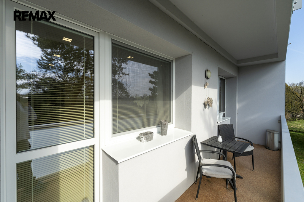 Velkým benefitem je balkon, na který je vstup jak z ložnice, tak z obývacího pokoje.