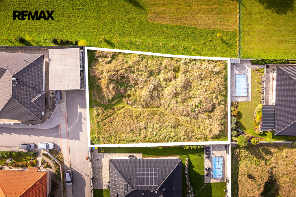 Obdélníkový, ze tří stran oplocený, rovinatý pozemek s rozměry cca 40 x 25 m s celkovou výměrou 1007 m2 je v územním plánu vedený jako plocha bydlení pro objekty rodinných domů s jednou nebo dvěma bytovými jednotkami. Je možná zastavitelnost pozemku do 25% max. dvoupodlažní stavbou s možností využití podkroví, jsou přípustné i ploché střechy. Pro doplňkové stavby, které nejsou spojené s hlavní stavbou a další zpevněné plochy platí zastavitelnost max. 35%. V lokalitě je minimální velikost stavebních pozemků 650 m2, rozdělení na dvě parcely tedy možné není.