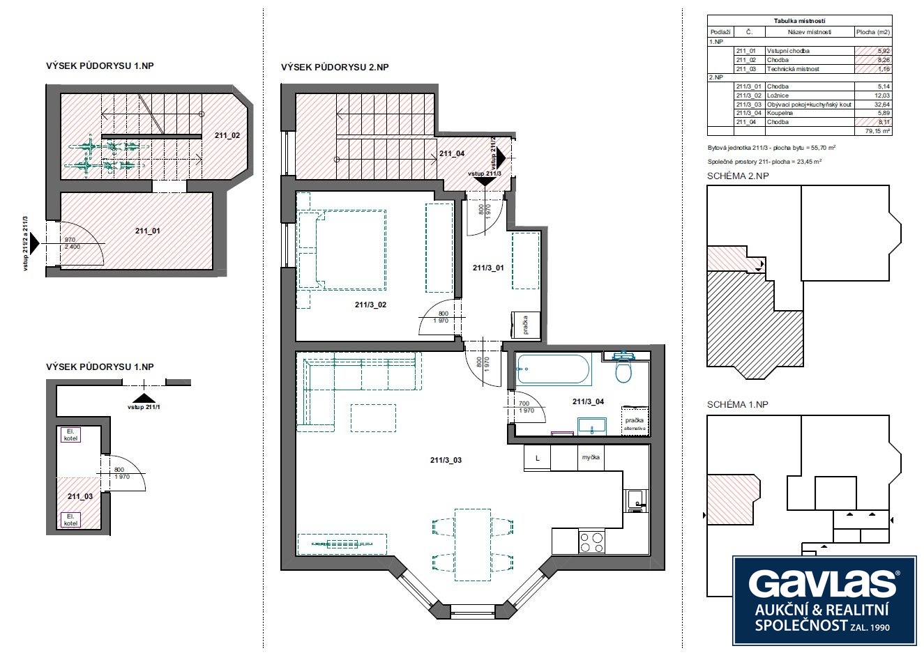 | Dispozice/podlahová plocha: | 2+kk/56 m² |