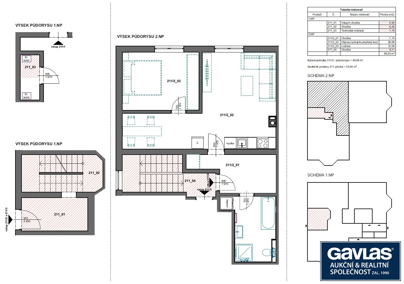 | Dispozice/podlahová plocha: | 2+kk/57 m² |