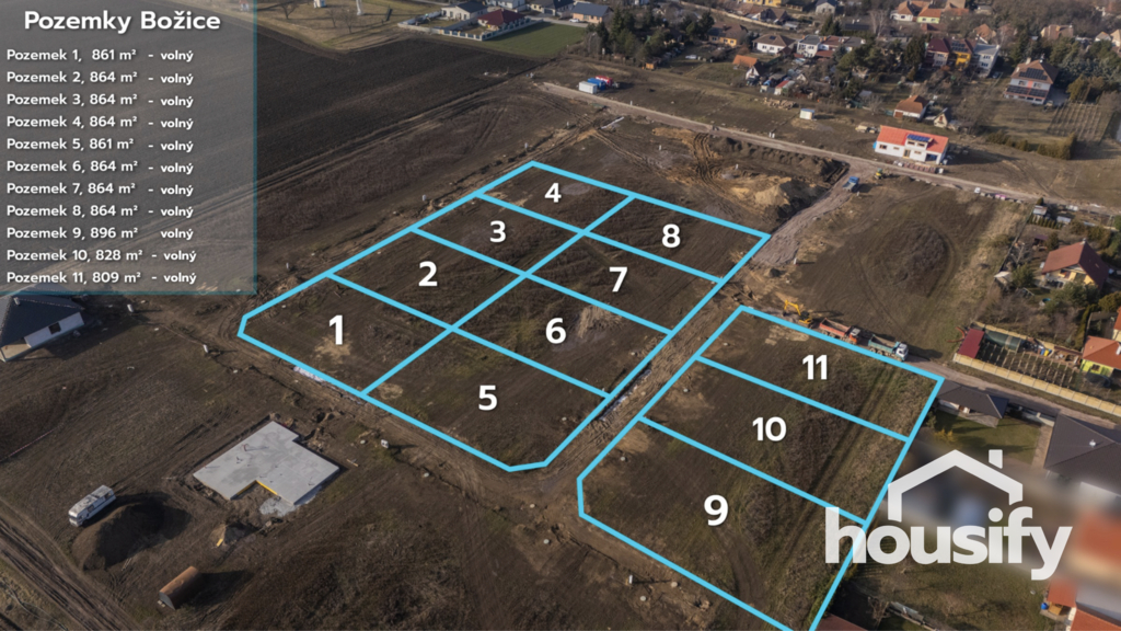 • 11 stavebních parcel - všechny volné