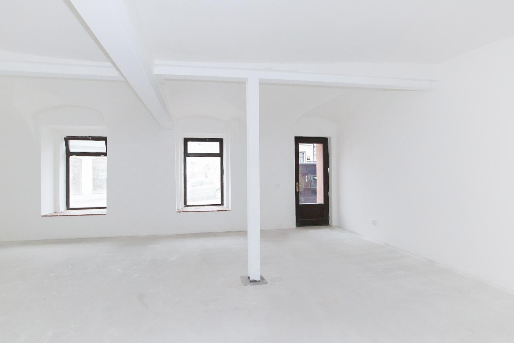 Prostory s výlohami se skládají z hlavní plochy, sociálního zařízení a sklepní místnosti. Vše v základní úpravě, dokončení dle svých individuálních potřeb.