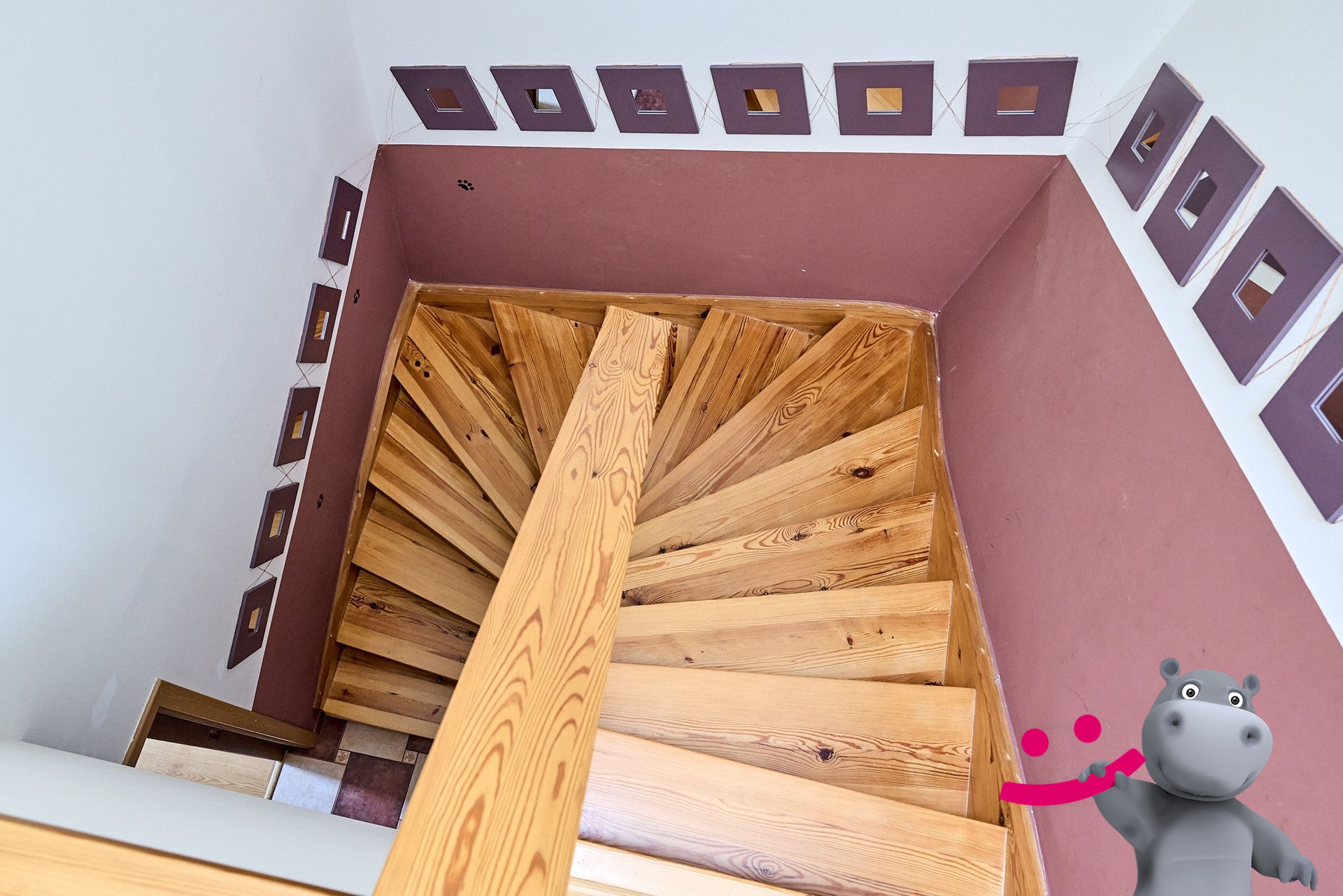 Dvě podlaží bytu poskytují dostatek soukromí a možnost oddělení činností rodičů a dětí.