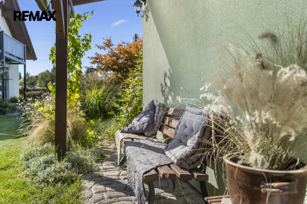Na zahradě najdete samostatnou vedlejší stavbu – s místností vhodnou pro cvičení jógy, posilování nebo práci z domova, krásnou saunu, samostatnou toaletu, kolárnu a přístřešek na dřevo, garáž s velkým pracovním prostorem a pohodlné parkování přímo na pozemku. Celková užitná plocha domu a vedlejších zmíněných staveb je přes 200 m2. Celý venkovní prostor je upravený, plně zařízený a působí mimořádně příjemně.
