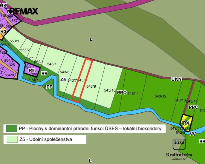 Jedná se o pozemek v malebném údolí říčky Loděnice o ploše 1169 m2 (rozměrech cca 15x80m). Územním plánem z velké části vedený jako “údolní společenstva”. Okolní pozemky jsou určeny k rekreaci.