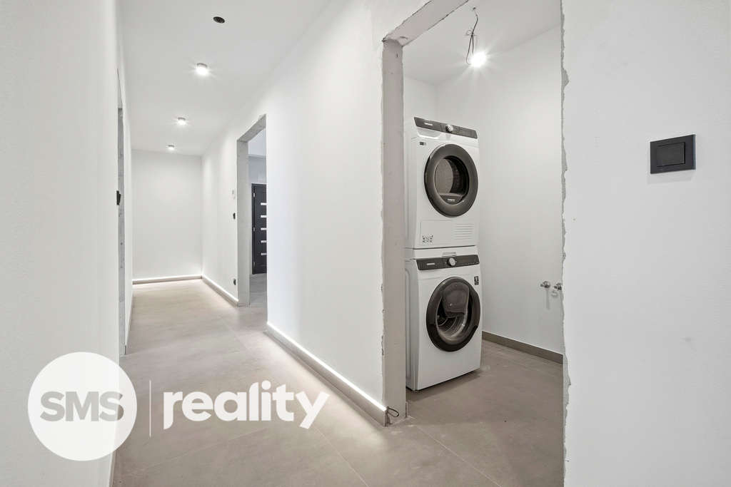 Dům nabízí čtyři prostorné ložnice (12,52 m², 12,59 m², 13,50 m² a pokoj o výměře 12,08 m² využitelný jako pracovna či pokoj pro hosty), dvě koupelny – jednu s vanou a toaletou (7,32 m²) a druhou se sprchovým koutem a toaletou (4,75 m²) – dále šatnu a technickou místnosti (6,48 m²) a místnost pro praní (1,83 m²). Součástí domu je také garáž o výměře 19,16 m² a před domem jsou k dispozici dvě komfortní parkovací stání.