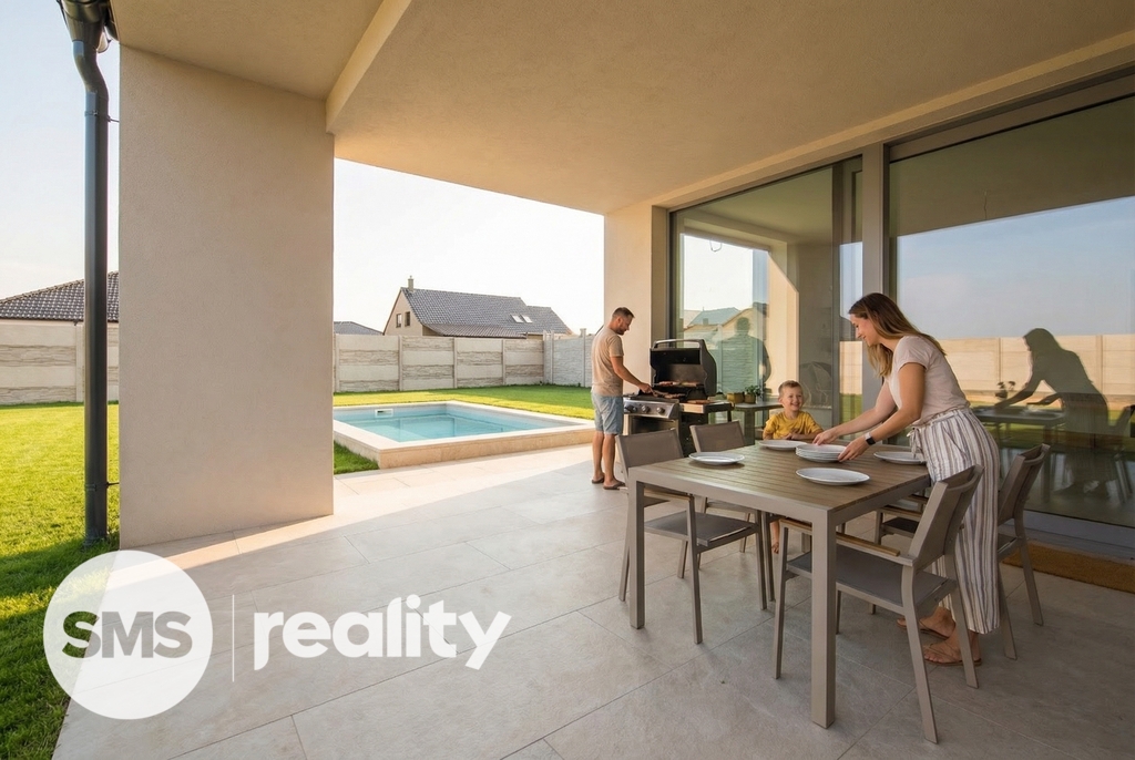 Zahrada poskytuje naprosté soukromí a dostatek prostoru pro relaxaci i rodinné aktivity. Je zde již připraven výkop pro budoucí bazén, což umožňuje snadnou realizaci soukromé wellness zóny.