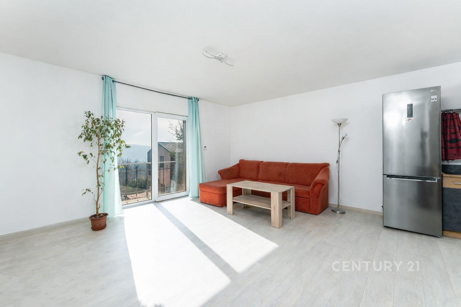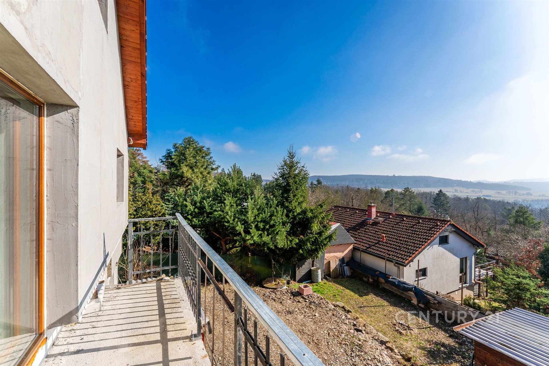 Srdcem domu je prostorný obývací pokoj s kuchyňským koutem a vstupem na balkon. Právě odsud se otevírá krásný výhled do okolní přírody, který dává domu příjemnou atmosféru a pocit prostoru. Díky poloze domu nad okolní zástavbou působí celý obytný prostor velmi vzdušně a nabízí příjemné soukromí.
