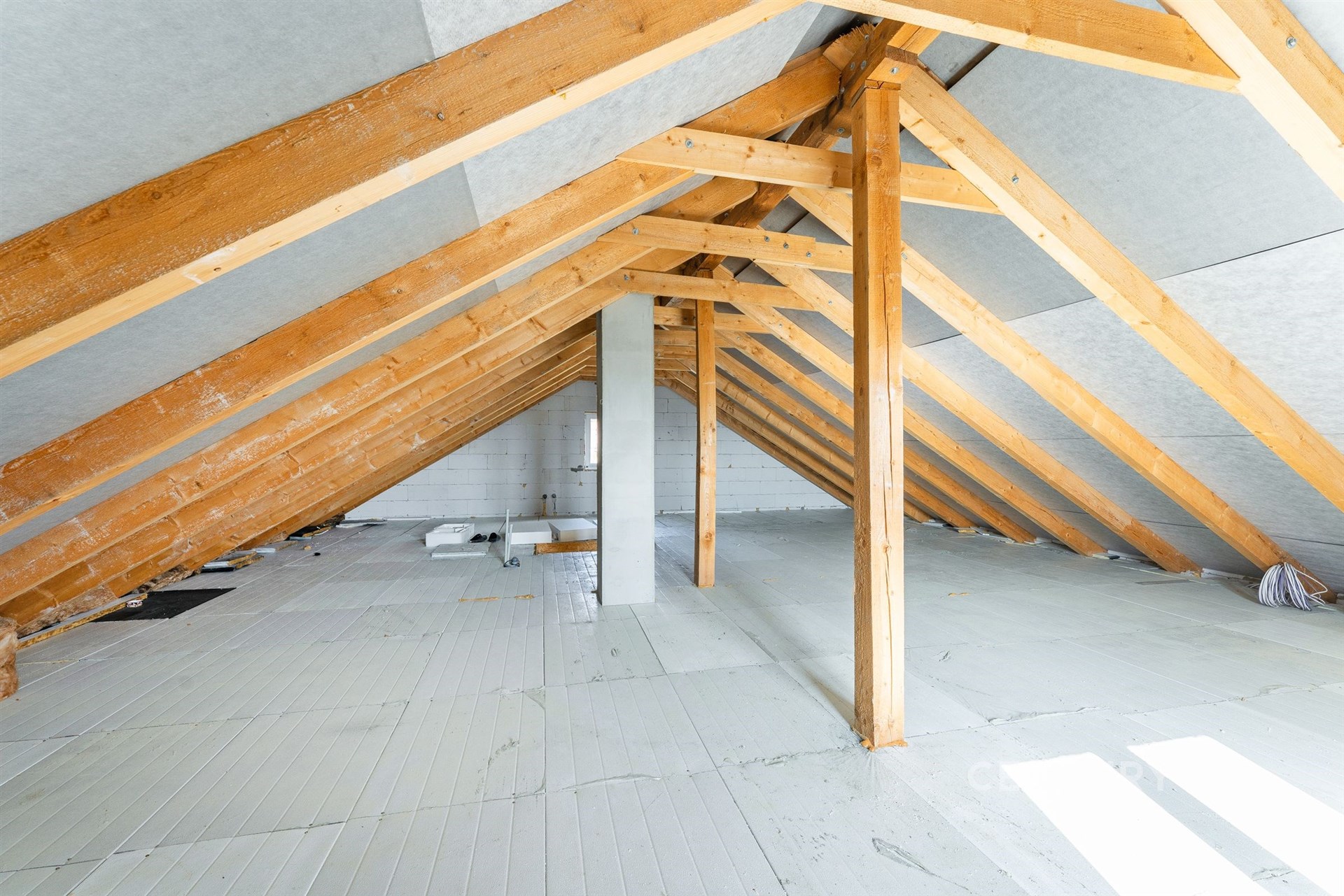 Hlavní obytné podlaží nabízí čtyři pokoje, kuchyňský kout, koupelnu vybavenou vanou, sprchovým koutem, umyvadlem a WC a dále vstupní zázemí se zádveřím, chodbou a schodištěm. Praktickým bonusem je prostorný suterén, kde se nachází garáž s hobby dílnou, dvě další užitkové místnosti vhodné například jako sklad nebo domácí zázemí a technická místnost s technologiemi vytápění. Prostor navíc nabízí potenciál pro další využití, například pro vybudování sauny nebo menší wellness zóny. Podkroví je zateplené PUR panely a umožňuje budoucí rozšíření obytné plochy.