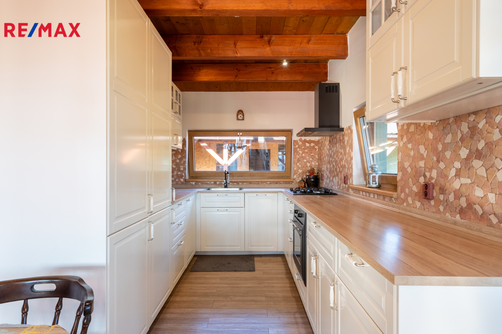 Rodinný dům o užitné ploše 120 m2 a dispozici 3+kk je přízemní. Dominantou domu je prostorný obývací pokoj, který plynule navazuje na kuchyňský kout. Kuchyňská linka je v bílém designu s plynovým sporákem, digestořem, myčkou i elektrickou troubou. Z obývacího pokoje je vstup do krásné zimní zahrady s celoprosklenými stěnami, odkud si můžete vychutnávat výhled na zahradu a okolní přírodu. Dále jsou zde dva samostatné pokoje, vše bezbariérové v jednom podlaží. V koupelně s moderními obklady je infra sauna. Součástí půdorysu domu je také technická místnost pro důmyslné řešení rozvodu tepla a teplé vody.
