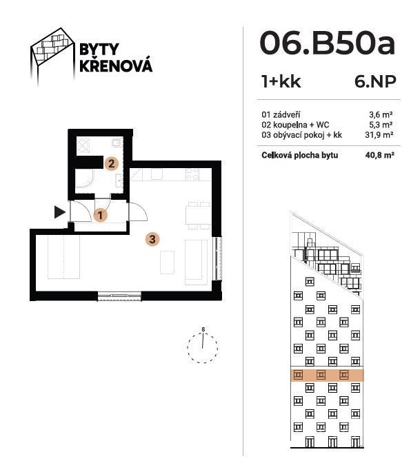 - Dispozice bytu: 1+kk