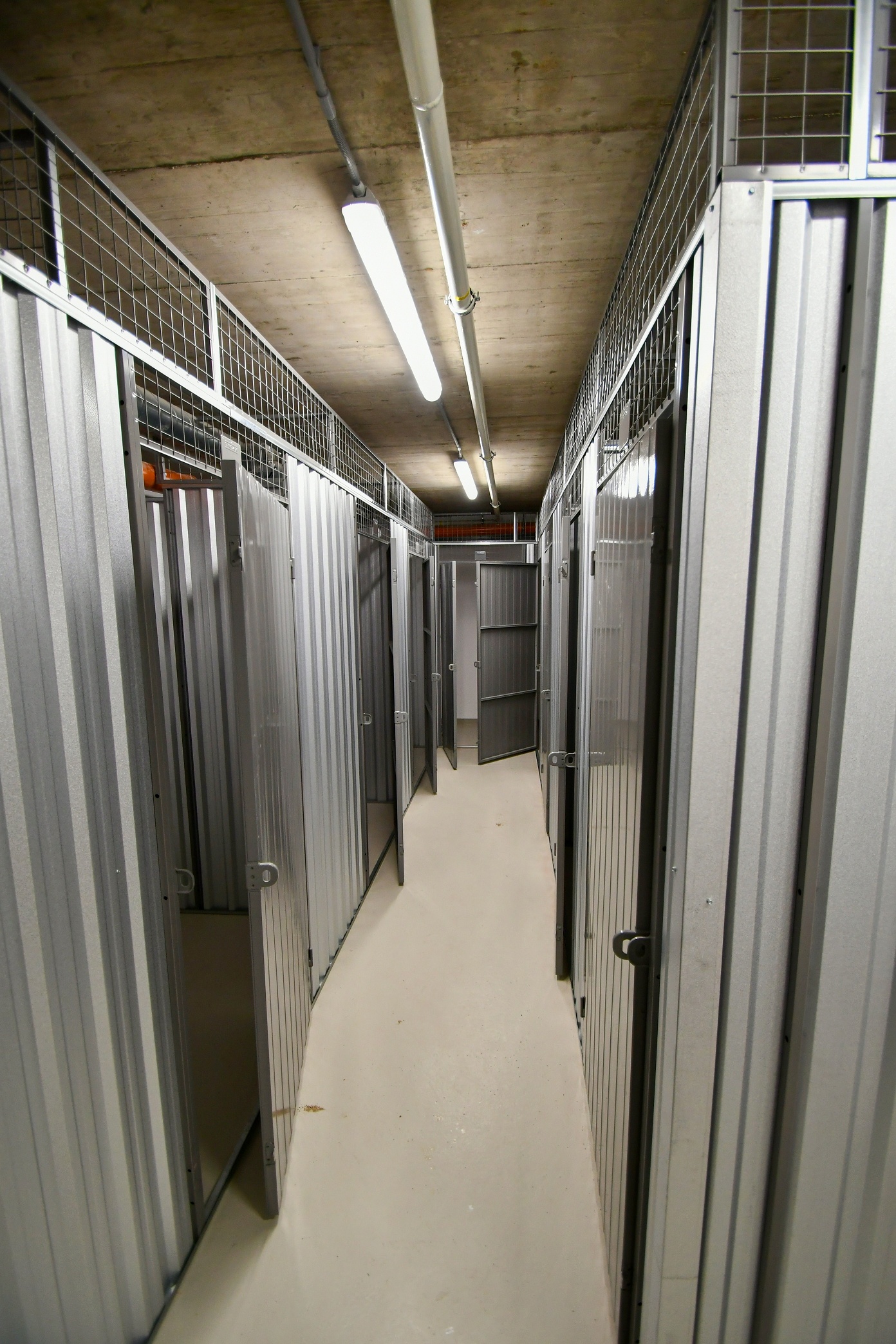 K bytu náleží sklepní kóje 2,3 m2 umístěná v suterénu domu. Součástí nabídky je možnost koupě vlastní garáže s dálkově ovládanými sekčními vraty a vjezdem z dvorní části objektu. K dispozici jsou garáže o ploše od 19,5 m2, s cenou od 1 171 800 Kč.