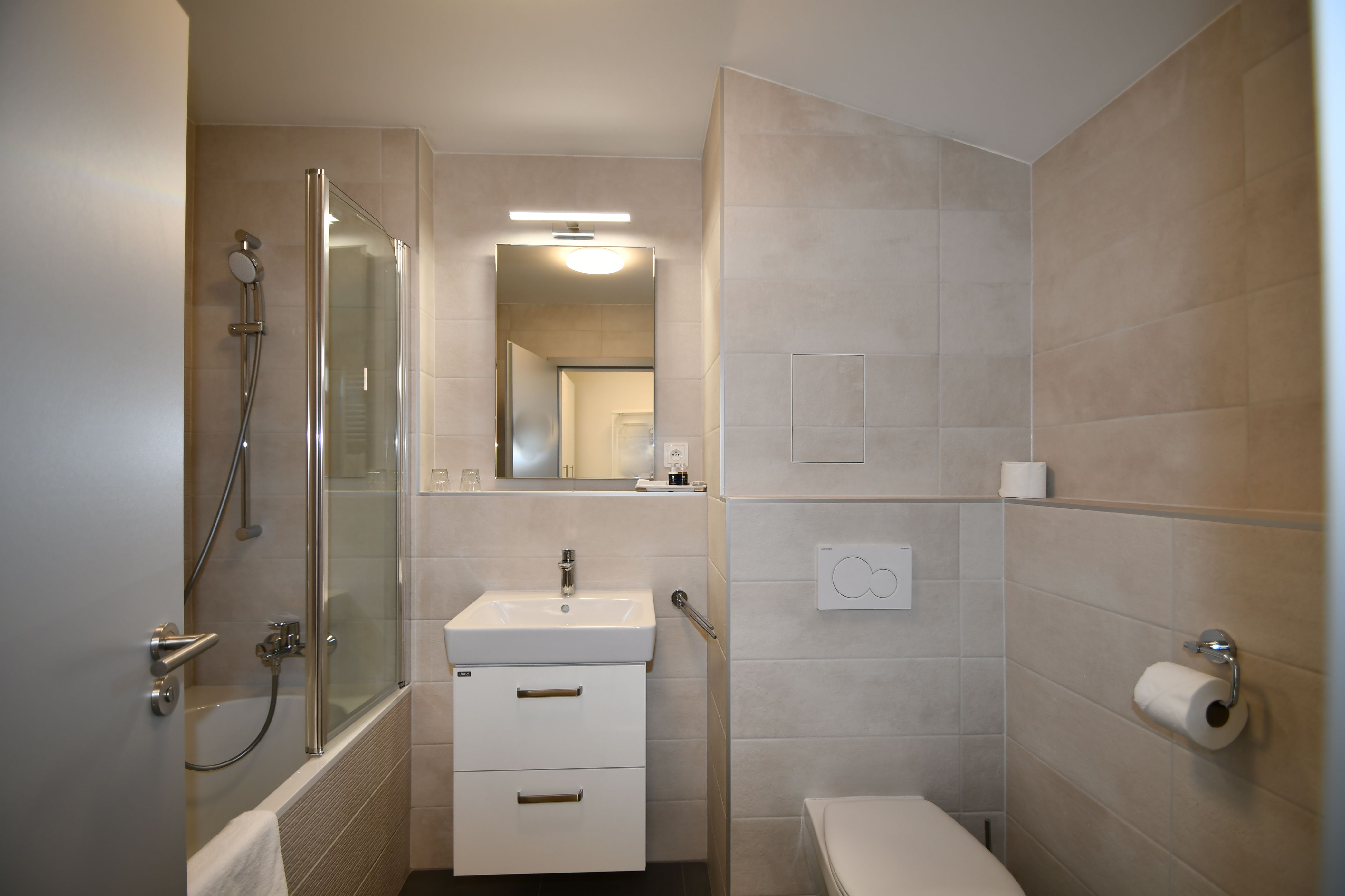 V bytě je podlahové vytápění s vlastním plynovým kondenzačním kotlem Baxi Nuvola Duo-tec se zásobníkem teplé vody. O chlazení se stará klimatizační jednotka Daikin. Chytrá domácnost SIEMENS umožňuje pohodlné ovládání topení, chlazení i stínění oken z jednoho místa.