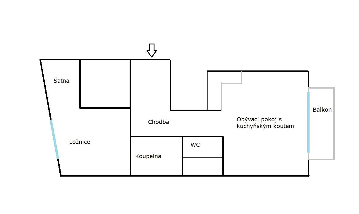 - Dispozice bytu: 2+kk