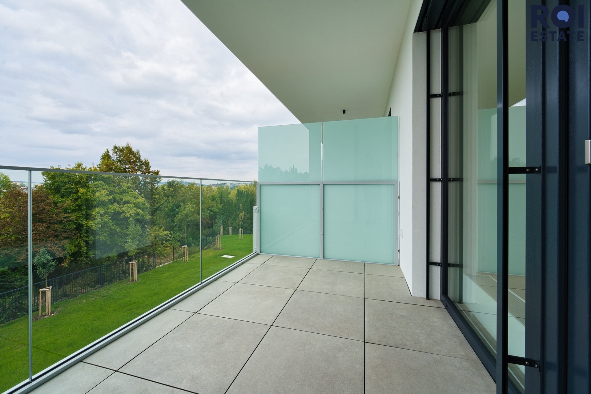 Z balkonu se díváte přímo do korun stromů - příjemné soukromí, přirozený stín v létě a kulisa, která zklidní i ten nejhektičtější den.