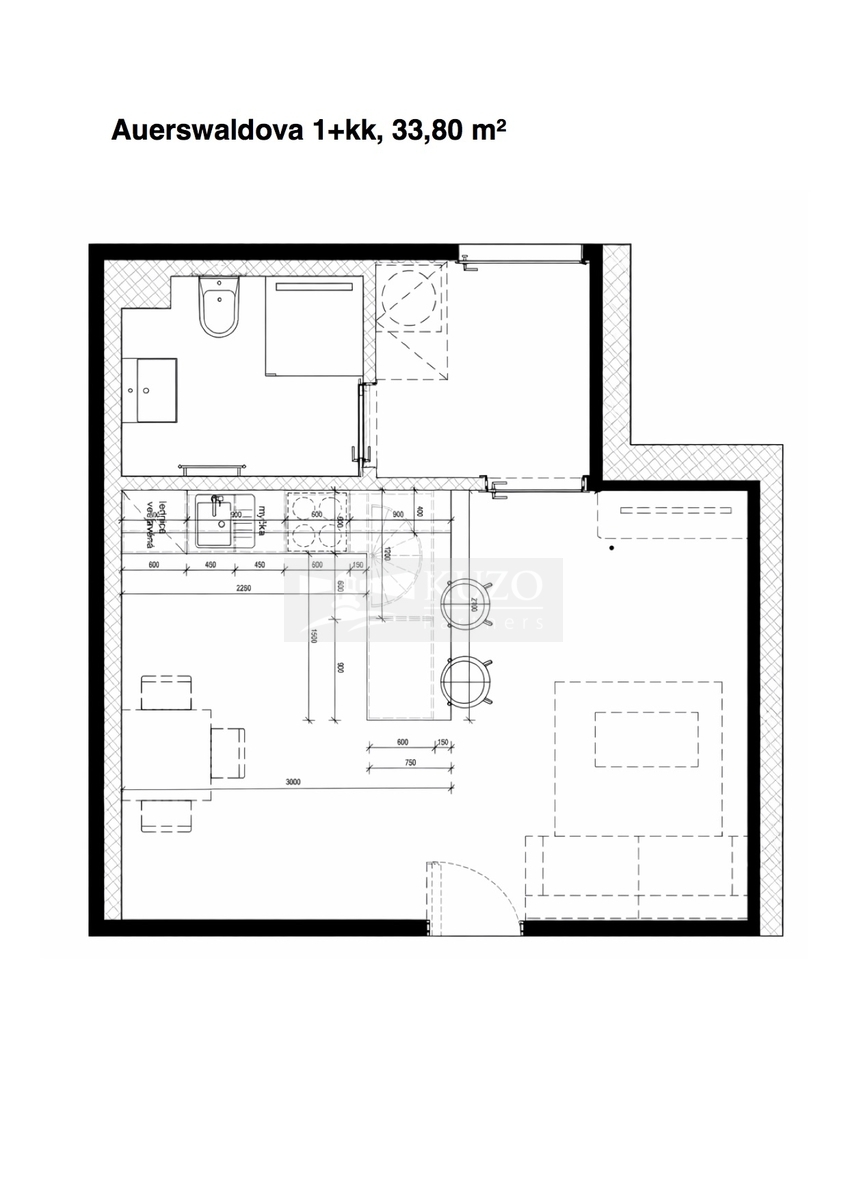 | Dispozice/podlahová plocha: | 1+kk/34 m² |
