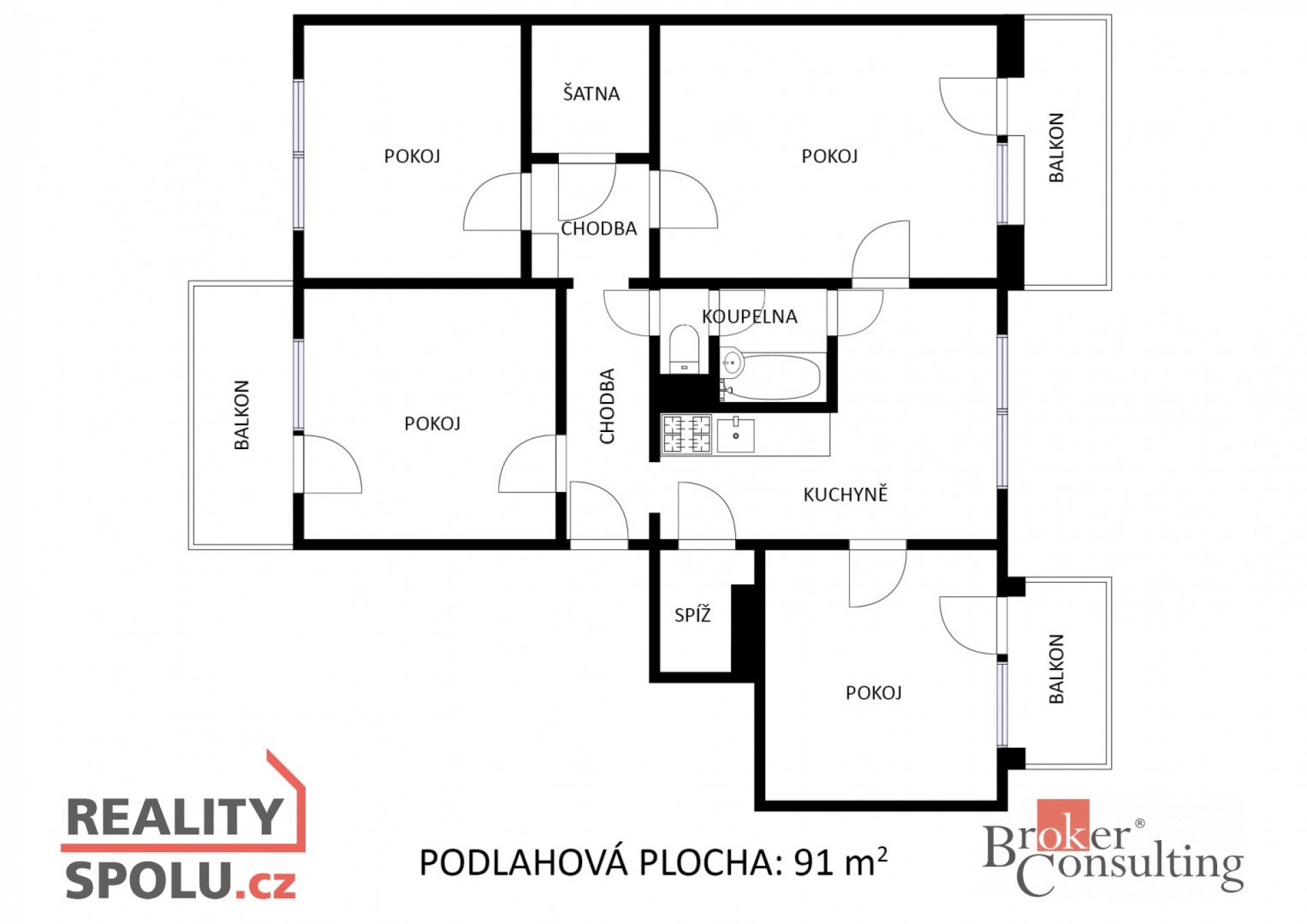 | Dispozice/podlahová plocha: | 4+1/91 m² |