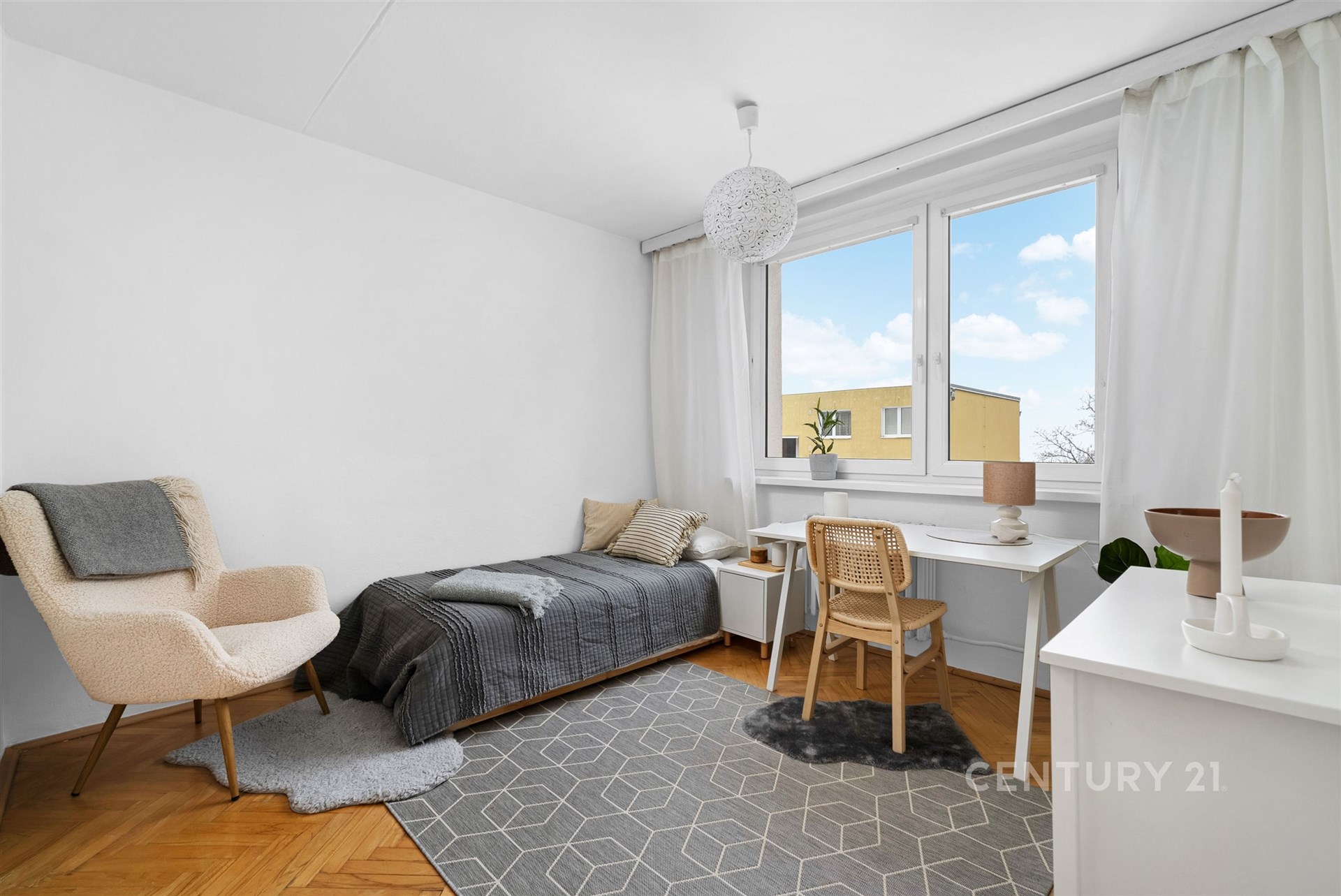 Dispozice bytu zahrnuje prostorný obývací pokoj, dvě samostatné ložnice, kuchyni, chodbu, koupelnu a oddělené WC. Velkou výhodou bytu je praktická komora přímo v bytě, která poskytuje dostatek úložného prostoru. K bytu náleží také sklep.