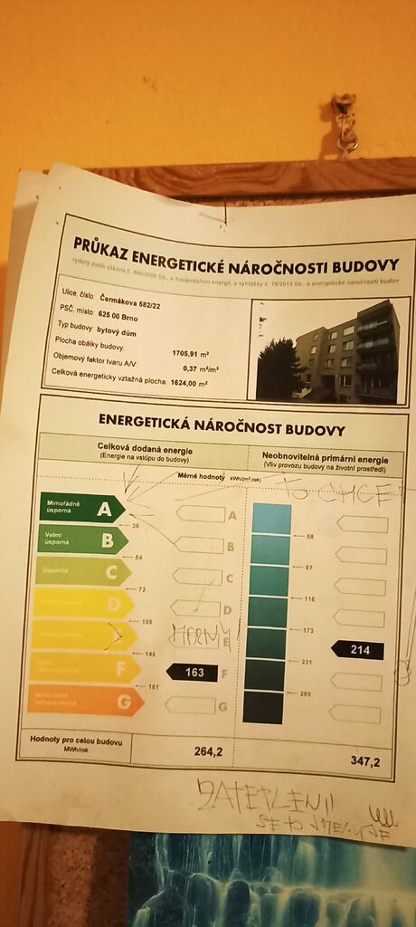 - Energetická náročnost budovy: F - Velmi nehospodárná