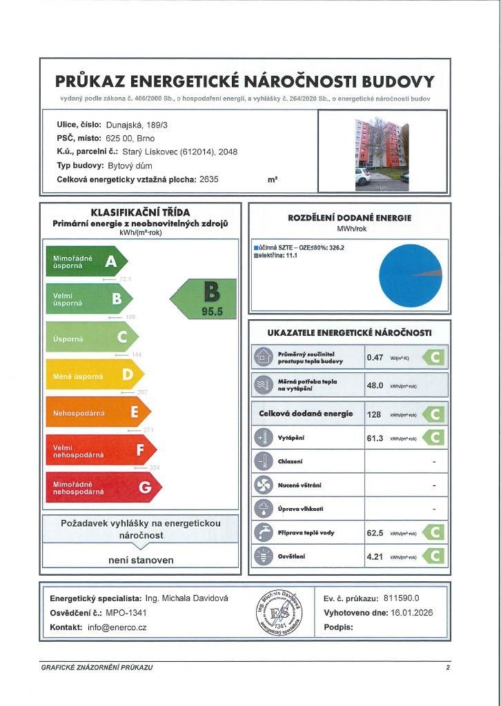 - Energetická náročnost budovy: B - Úsporná