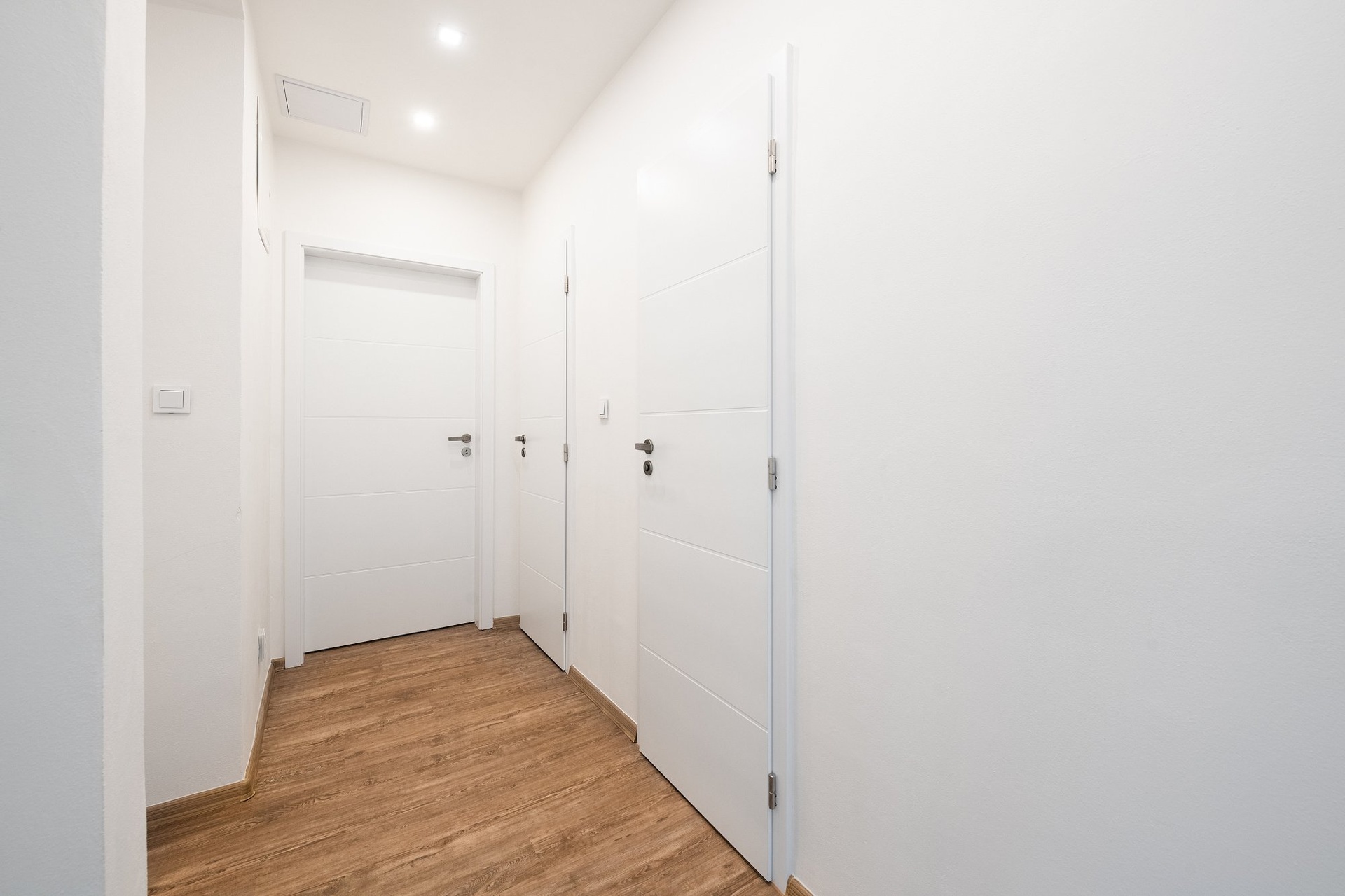 Za vstupem do bytu se nachází prostorná předsíň se vstupy do jednotlivých pokojů, do koupelny a na samostatnou toaletu.